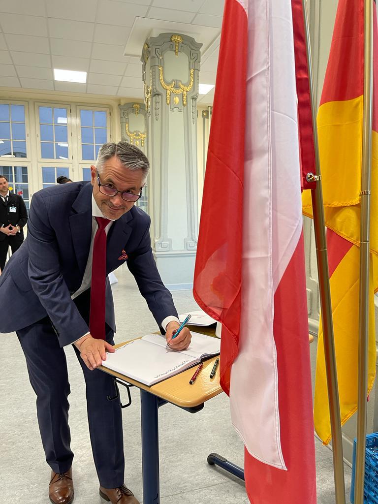 Dariusz Pawłoś Ambasador RP w Niemczech, który wpisał się do księgi pamiątkowej pogratulował dyrektor szkoły Pni Ewie Kampes oraz społeczności szkolnej wkładu w budowanie wizerunku Polski w Berlinie i Niemczech.