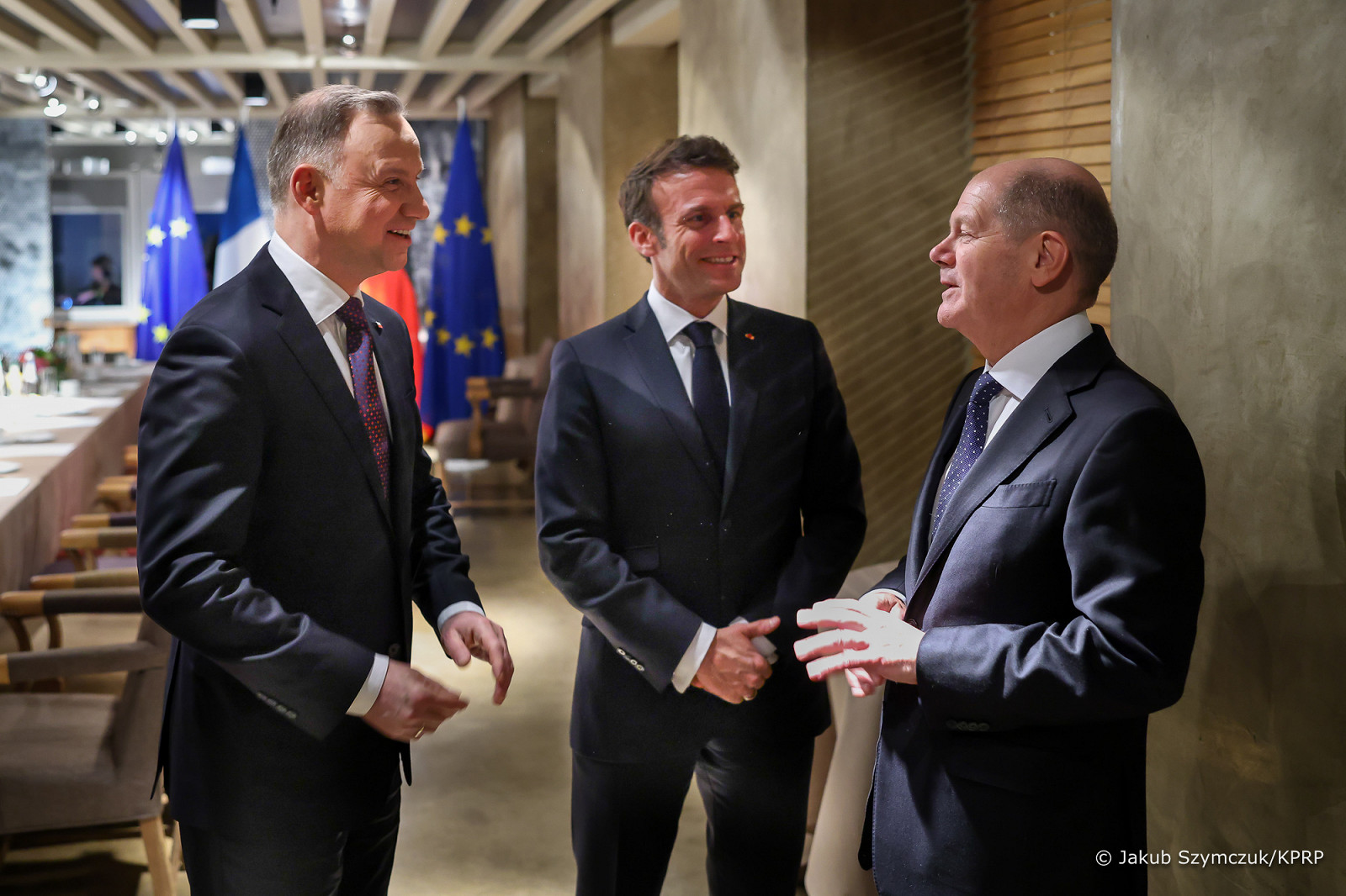 W ramach Trójkąta Weimarskiego Prezydent RP spotkał się z Kanclerzem Federalnym RFN Olafem Scholzem oraz Prezydentem Republiki Francuskiej Emmanuelem Macronem. Po spotkaniu z prasą przywódcy udali się na wspólne rozmowy, głównymi tematami były spójność sojusznicza, współdziałanie i jedność w ramach NATO. W Monachium Prezydent RP Andrzej Duda spotka się równiez z Prezydentem elektem Republiki Czeskiej Petrem Pavlem oraz Premierem Norwegii Jonasem Gahrem Størem. Więcej: https://www.prezydent.pl/aktualnosci/wizyty-zagraniczne/monachium-spotkanie-z-prezydentem-francji-i-kanclerzem-niemiec,64771