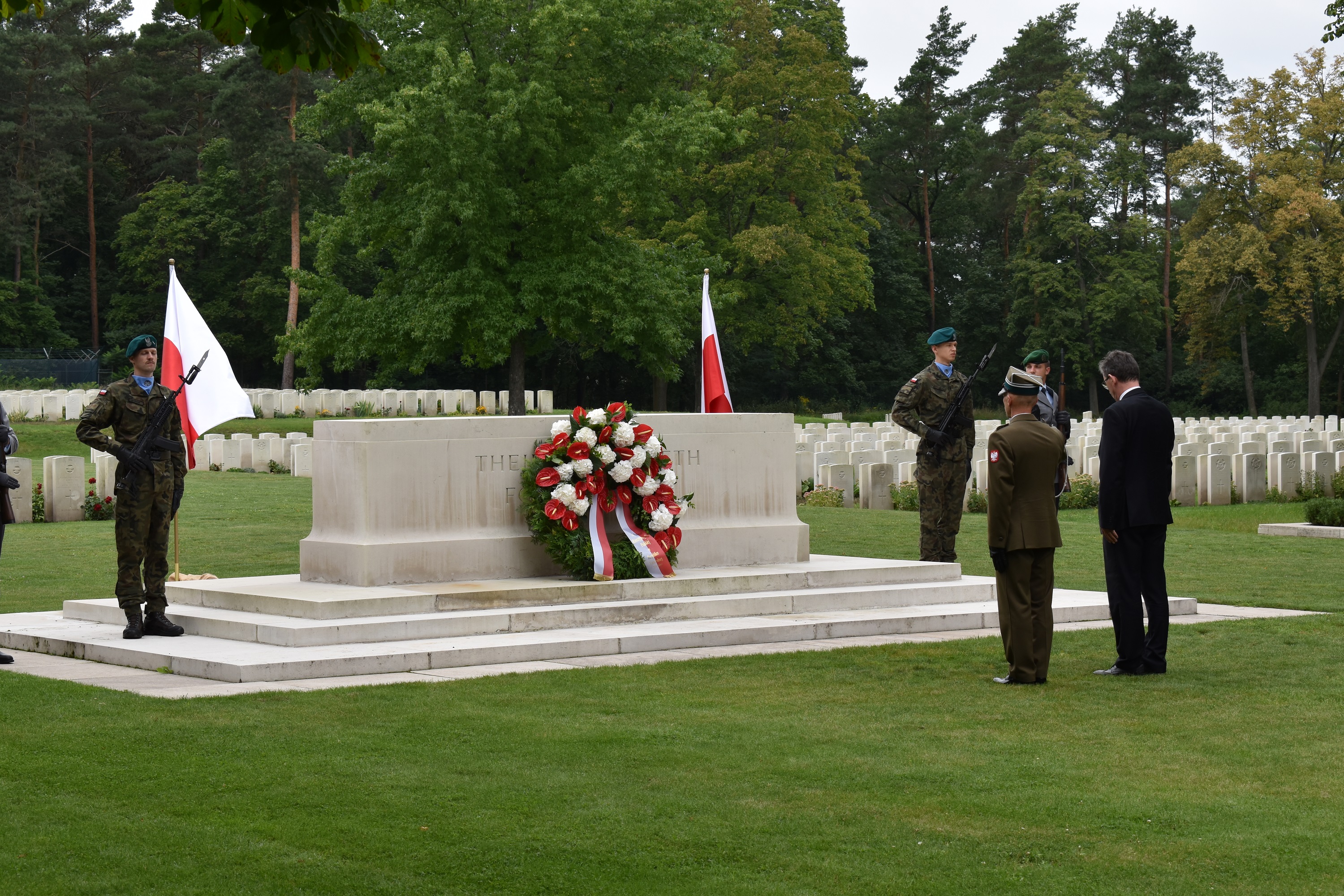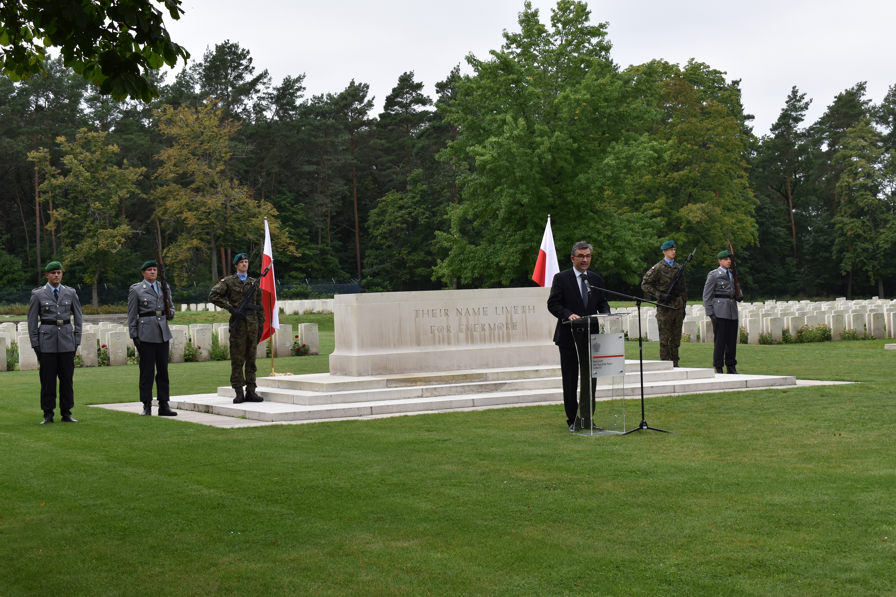 Główne obchody rocznicy 1 września miały miejsce na Brytyjskim Cmentarzu Wojennym w Berlinie, gdzie obok Brytyjczyków spoczywają również polscy lotnicy polegli w czasie wojny w walkach nad Niemcami. Przemówienie wygłosił Ambasador RP w Niemczech prof. Andrzej Przyłębski, który wraz z Attaché Obrony płk. Arturem Romanowskim złożył wieniec pod pomnikiem ofiar. Wieńce złożyli również przedstawiciele władz Berlina i Brandenburgii, korpusu dyplomatycznego oraz delegacje organizacji i środowisk polonijnych z terenu Berlina, którym towarzyszył wicekonsul Adam Borkowski: Związek Polaków w Niemczech, Szkoła Polska im. gen. Stefana Grota-Roweckiego przy Ambasadzie RP, 5. Berlińska Drużyna Harcerzy ZHP Świat im. Niedźwiedzia kpr. Wojtka oraz Polska Rada – Związek Krajowy w Berlinie. Obecny był wikariusz Polskiej Misji Katolickiej w Berlinie. Na grobach pięciu polskich lotników z 300. Dywizjonu „Ziemi Mazowieckiej” zapalono białe i czerwone znicze. W imieniu rządu federalnego Niemiec wieniec na Brytyjskim Cmentarzu Wojennym w Berlinie złożył pan Felix Schwarz, zastępca szefa protokołu w Ministerstwie Spraw Zagranicznych Republiki Federalnej Niemiec. W imieniu kraju związkowego Brandenburgia wieniec złożył pan Dietmar Woidke, minister-prezydent kraju związkowego Brandenburgia, a w imieniu burmistrza Berlina wieniec złożyła pani Sawsan Chebli, pełnomocniczka kraju związkowego Berlin rządu federalnego Niemiec, sekretarz stanu ds. zaangażowania obywatelskiego i spraw międzynarodowych w Kancelarii Senatu Berlina.
