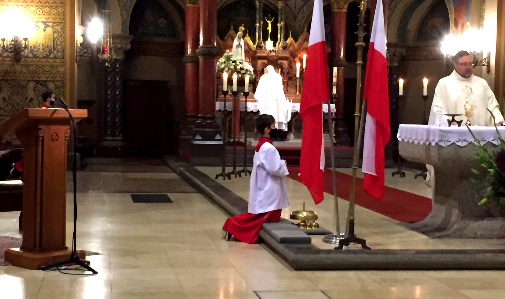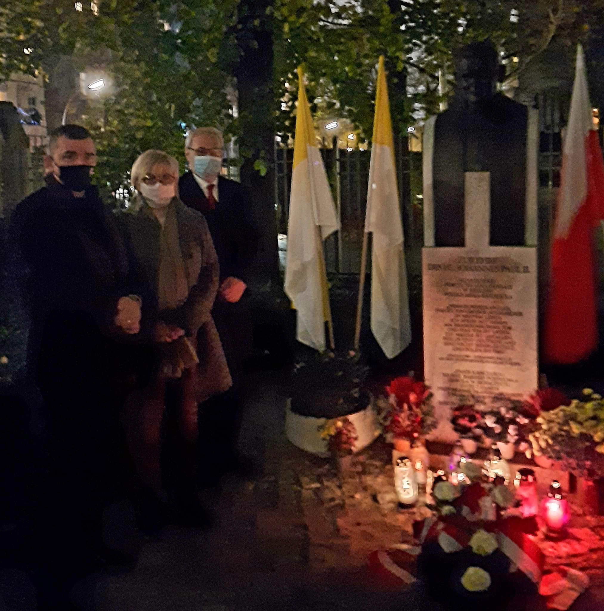 Przed nabożeństwem Ambasador Andrzej Przyłębski wraz z małżonką Julią Przyłębską i Konsulem RP Piotrem Golemą złożył wiązankę kwiatów oraz zapalił znicz pod pomnikiem św. Jana Pawła II, znajdującym się na placu przed Bazyliką. W ten sposób zaznaczył 100. rocznicę urodzin Papieża-Polaka przypadającą w tym roku.