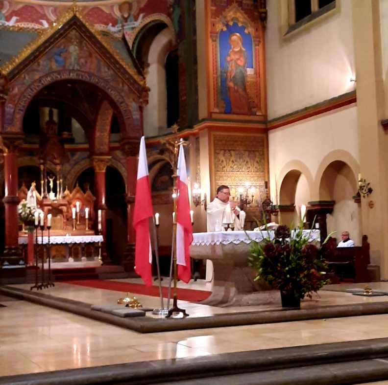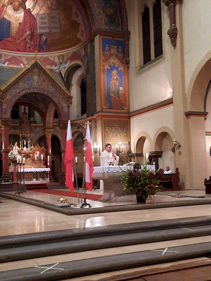 W mszy św. w dniu Święta Niepodległości ze względu na reżim sanitarny mogło uczestniczyć zaledwie kilkadziesiąt osób. Mszy przewodniczył i homilię nawiązującą do patriotycznej rocznicy wygłosił ks. Grzegorz Jeżewski, wikariusz Polskiej Misji Katolickiej w Berlinie. Na zakończenie wybrzmiały: „Boże, coś Polskę” oraz „Mazurek Dąbrowskiego”. Intencja mszy św. została zamówiona przez Ambasadora RP i Konsula RP w Berlinie.