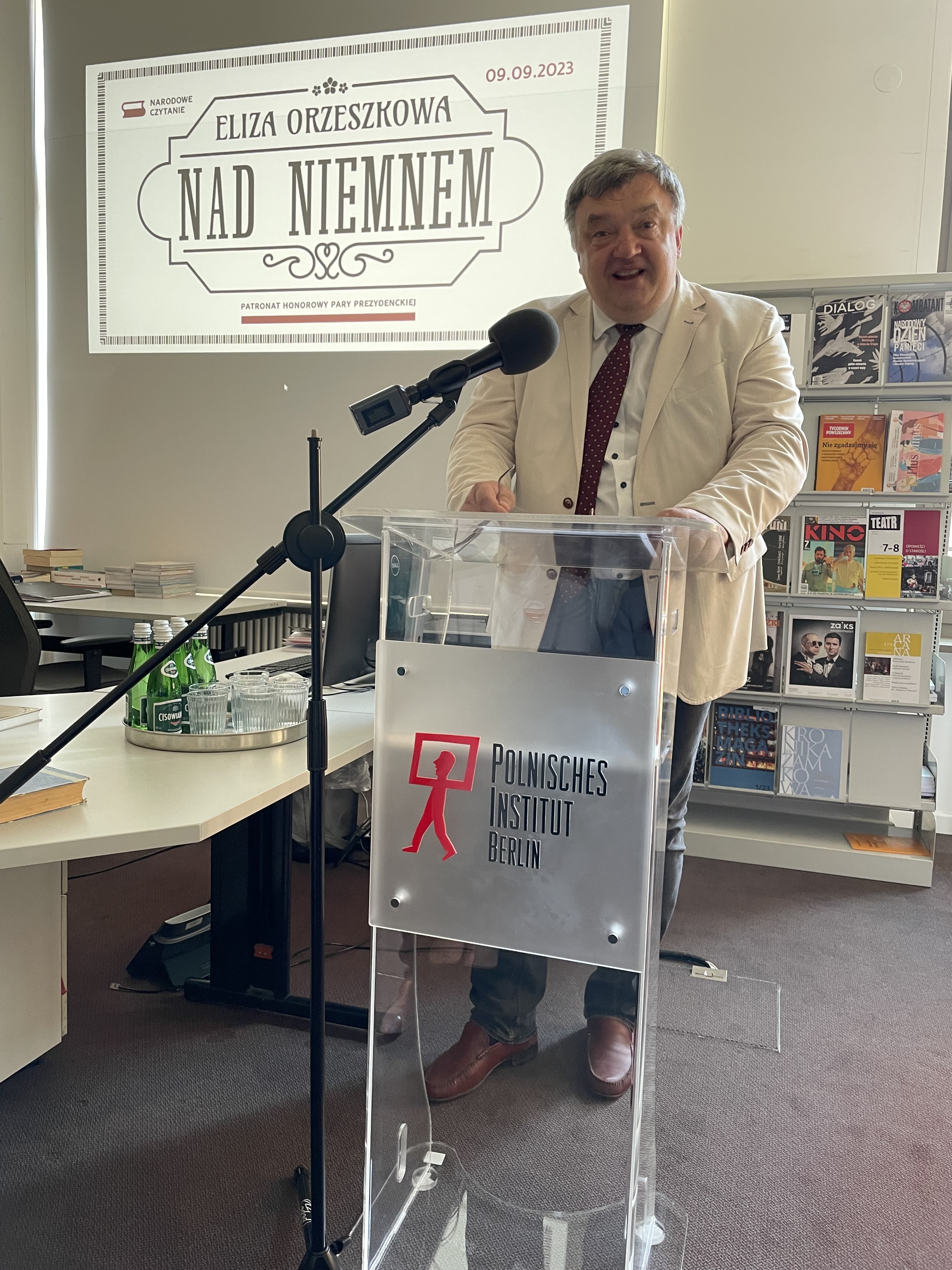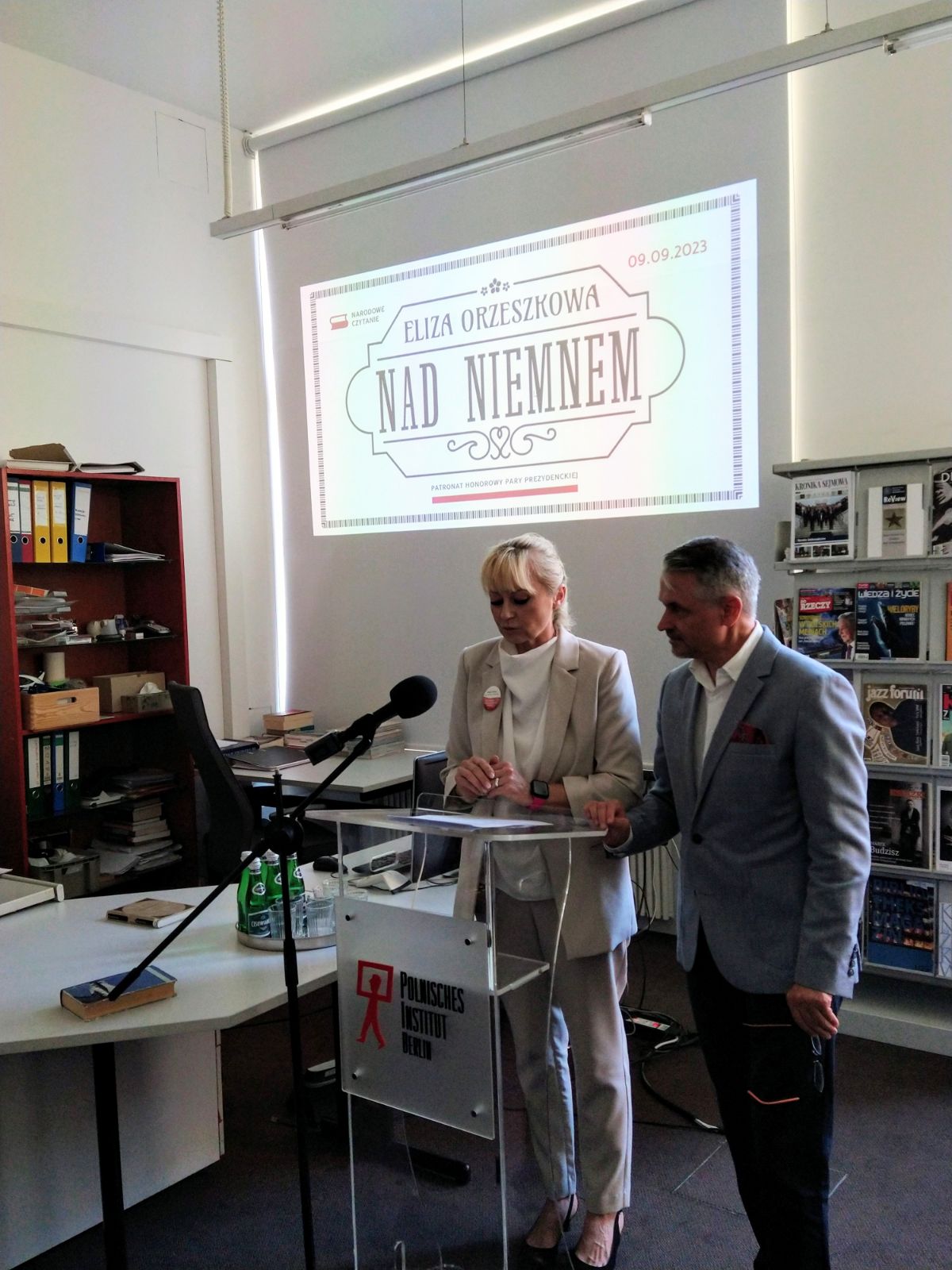 Ambasada RP w Berlinie wraz Instytutem Polskim w Berlinie dołączyła do 12. edycji Narodowego Czytania - corocznego święta czytelnictwa i literatury polskiej. W gronie czytających tegoroczną lekturę "Nad Niemnem" Elizy Orzeszkowej znaleźli się: Ambasador RP Dariusz Pawłoś z małżonką, Ambasador Republiki Litewskiej Ramūnas Misilius, Dyrektor Instytutu Polskiego Marzena Kępowicz oraz przedstawiciele młodzieży ze Szkoły Polskiej im. gen. Stefana Grota-Roweckiego w Berlinie.