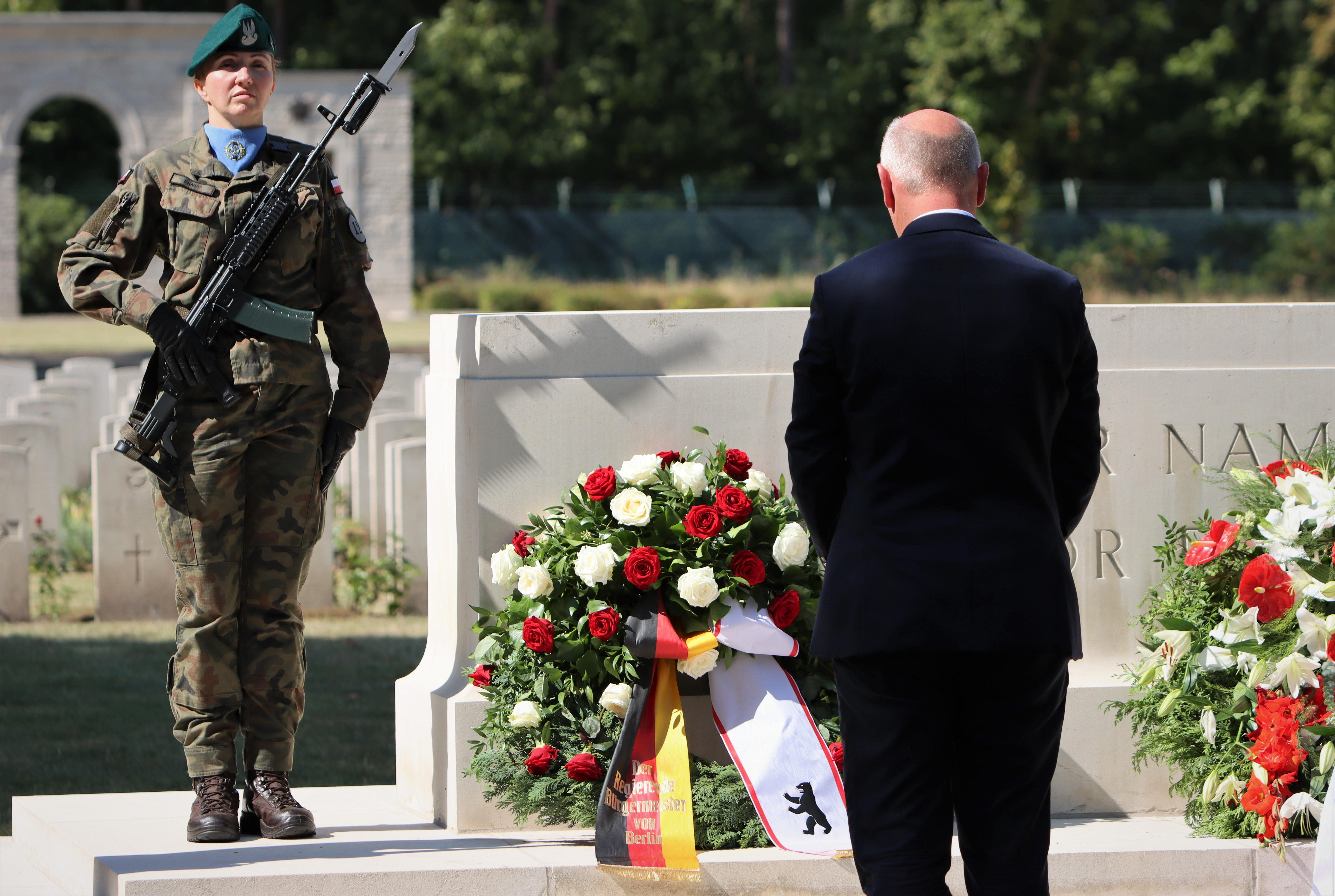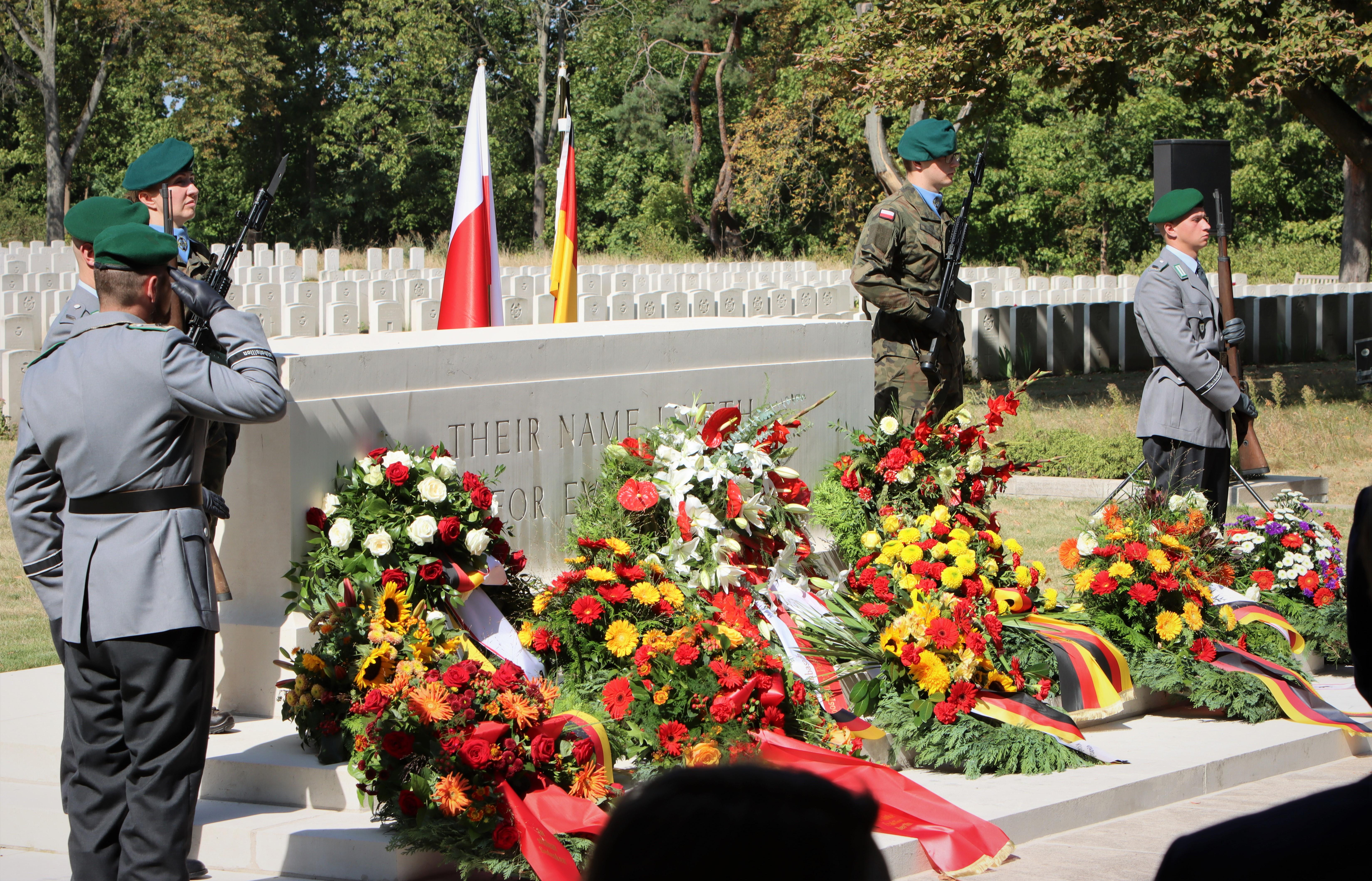 W hołdzie poległym złożone wieńce, m.in. w imieniu szefowej Kancelarii Prezydenta Federalnego D. Dinter (W. Silbermann) oraz sekretarz stanu ds. kultury i mediów C. Roth (M. Bering), frakcji CDU (D. Stettner) oraz Die Linke (T. Schulze) z Izby Deputowanych Berlina. Ponadto wieńce złożyło 10 przedstawicieli CD/korpusu attaché wojskowych, przedstawiciel Instytutu Pileckiego oraz i organizacji polonijnych. Obchody odbyły się w asyście żołnierzy polskich i niemieckich.