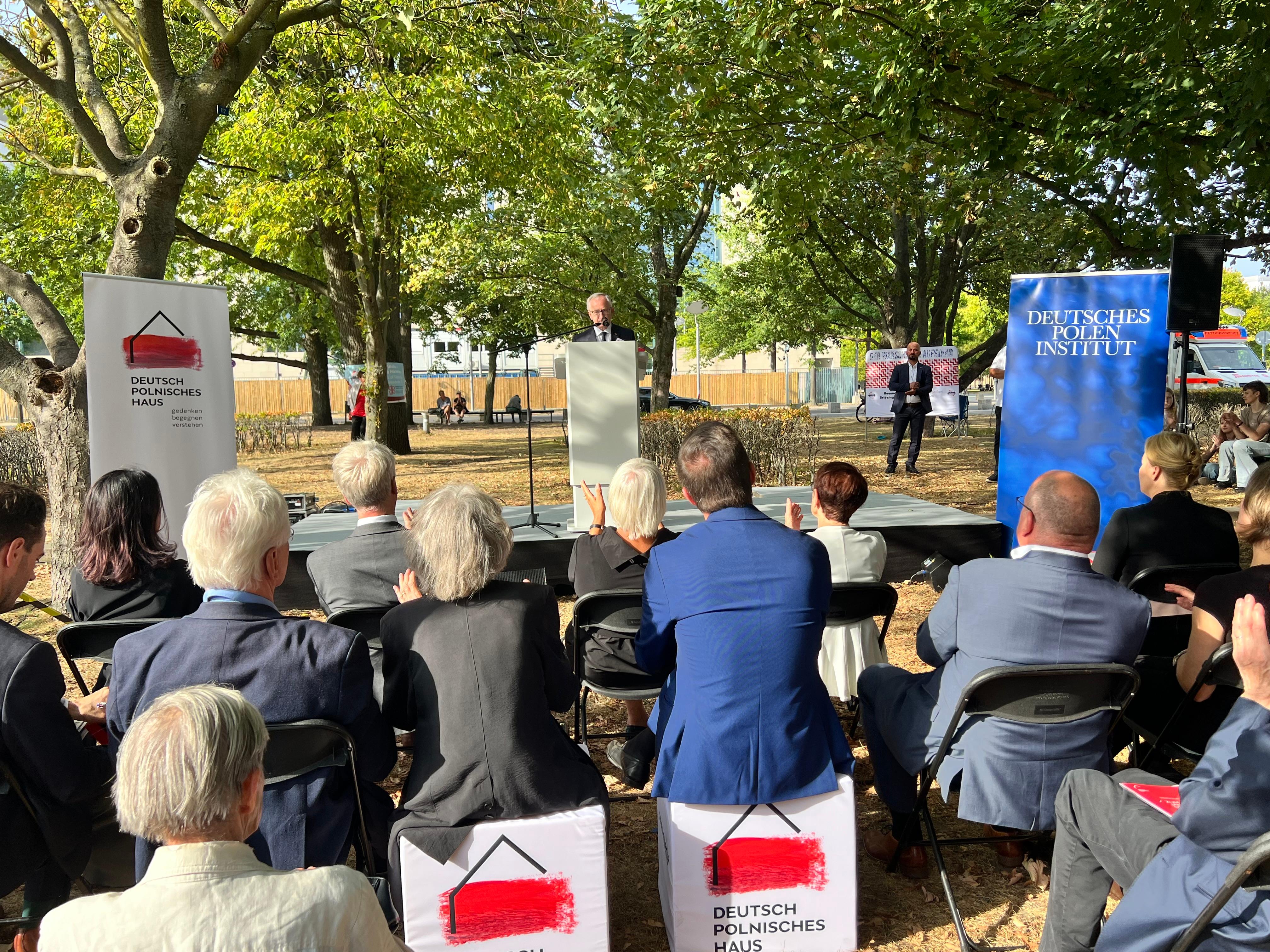 Tradycyjnie w miejscu po dawnej Operze Krolla Niemiecki Instytut Spraw Polskich przy współpracy z historykami zespołu koordynującego projekt Domu Niemiecko-Polskiego dr Agnieszką Wierzcholską i dr Robertem Parzerem zorganizowali obchody rocznicy wybuchu II wojny światowej. W uroczystości wzięli udział minister spraw zagranicznych A. Baerbock, minister stanu i pełnomocnik ds. kultury i mediów C. Roth, dyrektor Fundacji Pomnika Pomordowanych Żydów Europy U. Neumärker, przewodniczący Niemieckiego Instytutu Spraw Polskich i były minister spraw zagranicznych H. Maas i wiceburmistrz Berlina F. Giffey. Stronę polską reprezentował Charge d'affaires a.i. Jan Tombiński.