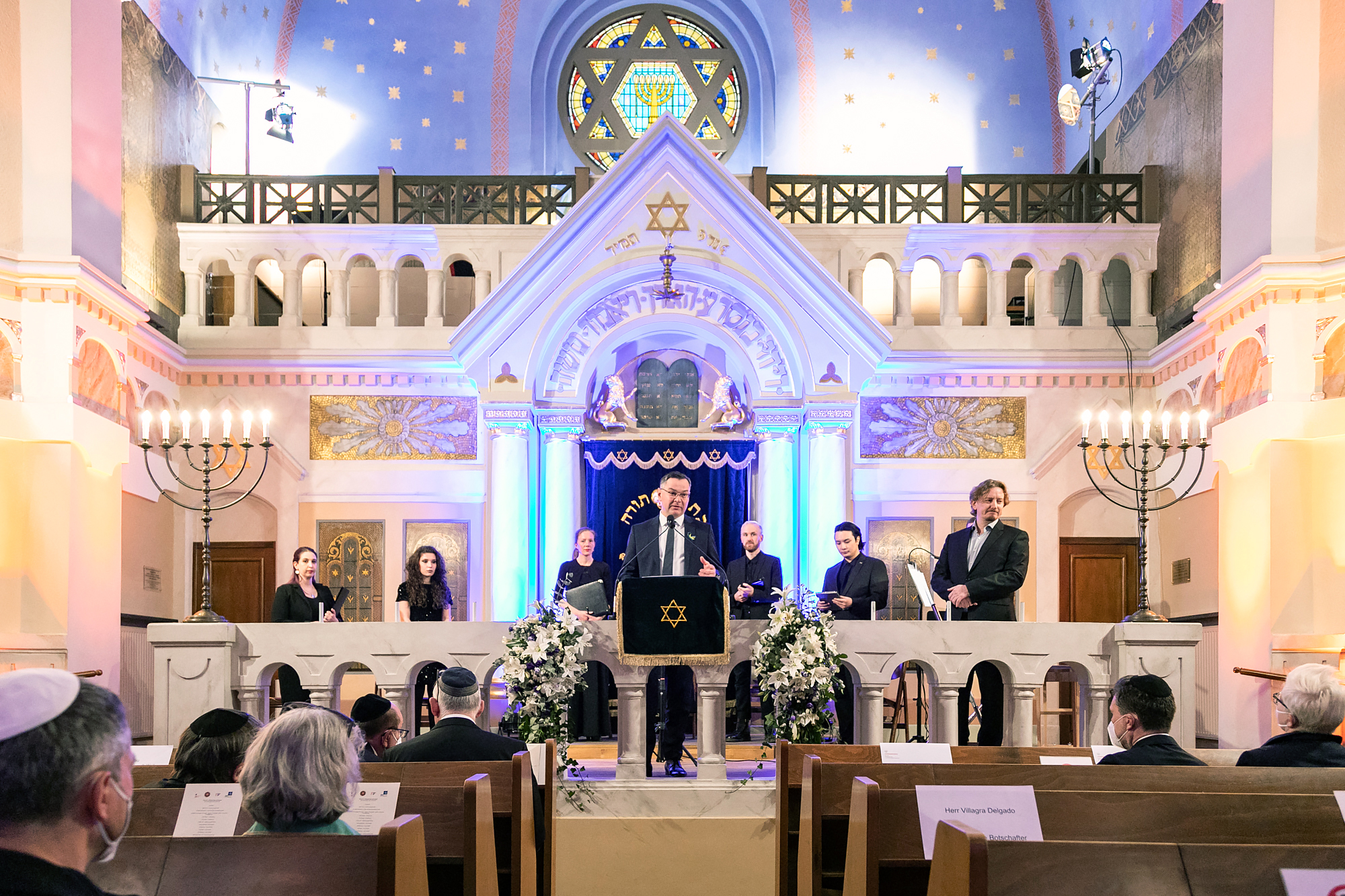 Wśród zgromadzonych gości znaleźli się m.in. sekretarz stanu ds. europejskich Senatu Berlina Gerry Woop, ambasador Argentyny w RFN, przedstawiciele korpusu dyplomatycznego i wojskowego w Berlinie, przedstawiciele biznesu, instytucji kulturalnych, dziennikarze i muzycy. Przedstawiciele synagogi zaprosili również gości z berlińskich środowisk żydowskich.