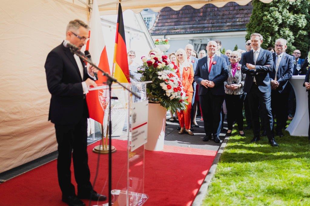 5 maja br. w ogrodach ambasady odbyły się uroczyste obchody święta narodowego 3 Maja. Gośćmi honorowymi wydarzenia byli Minister ds. UE RP Szymon Szynkowski vel Sęk oraz federalny Minister Finansów Christian Lindner.