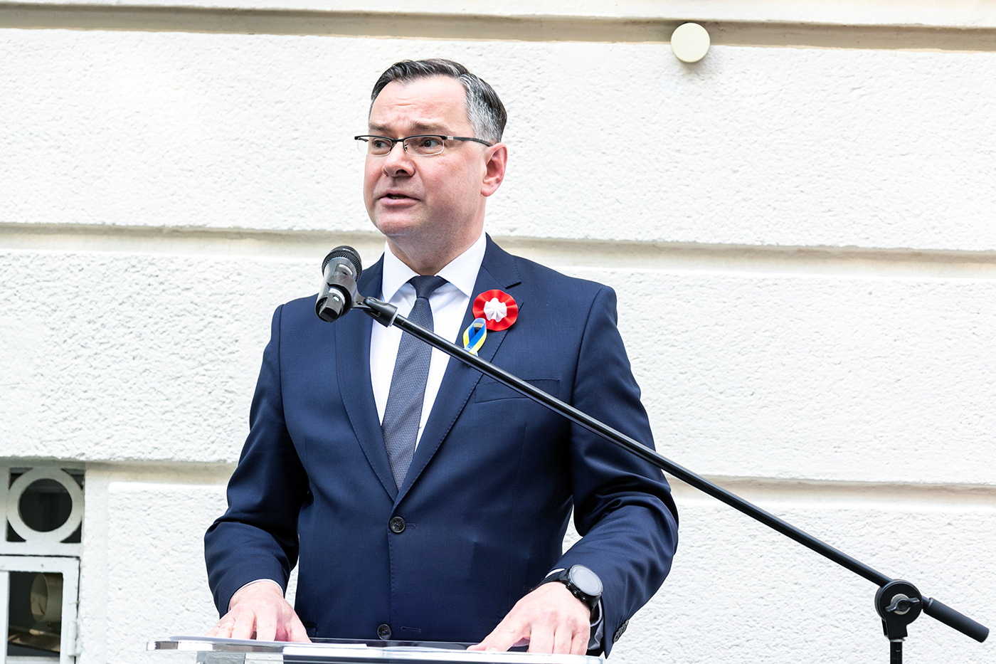 W trakcie przemówienia chargé d’affaires P. Gronow poprosił o minutę ciszy dla ofiar wojny w Ukrainie.