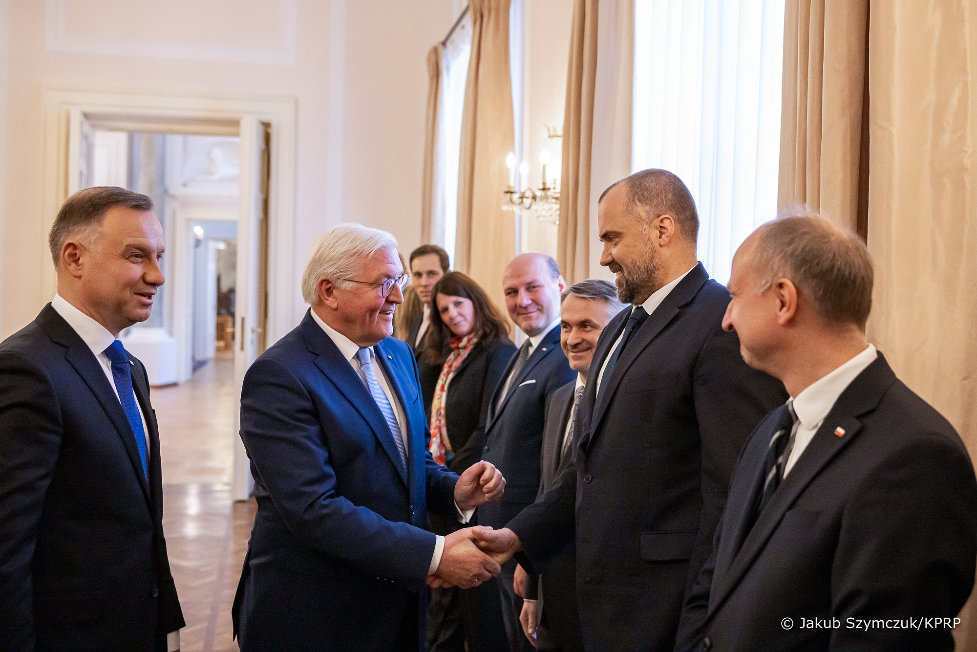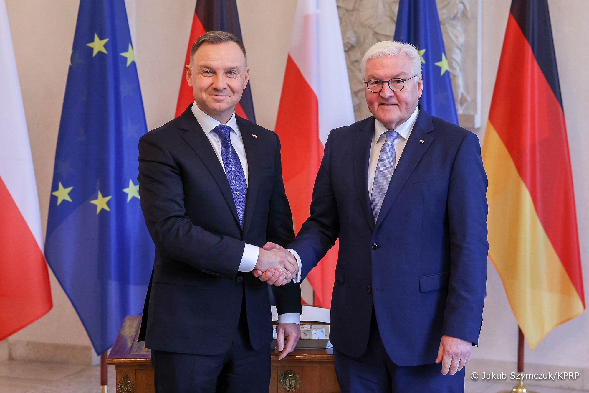 – Niemcy były i są wielkim państwem europejskim, wielkim mocarstwem europejskim, a także naszym wielkim sąsiadem, z którym Polska jest związana najsilniejszymi nićmi wynikającymi nie tylko ze wspólnej granicy, ale też z ogromnych powiązań gospodarczych, wspólnych interesów oraz ważnych wydarzeń we wspólnej historii, czasem trudnych, ale w istocie ważnych – a na przestrzeni ostatnich 30 lat na pewno dobrej historii – mówił Andrzej Duda.