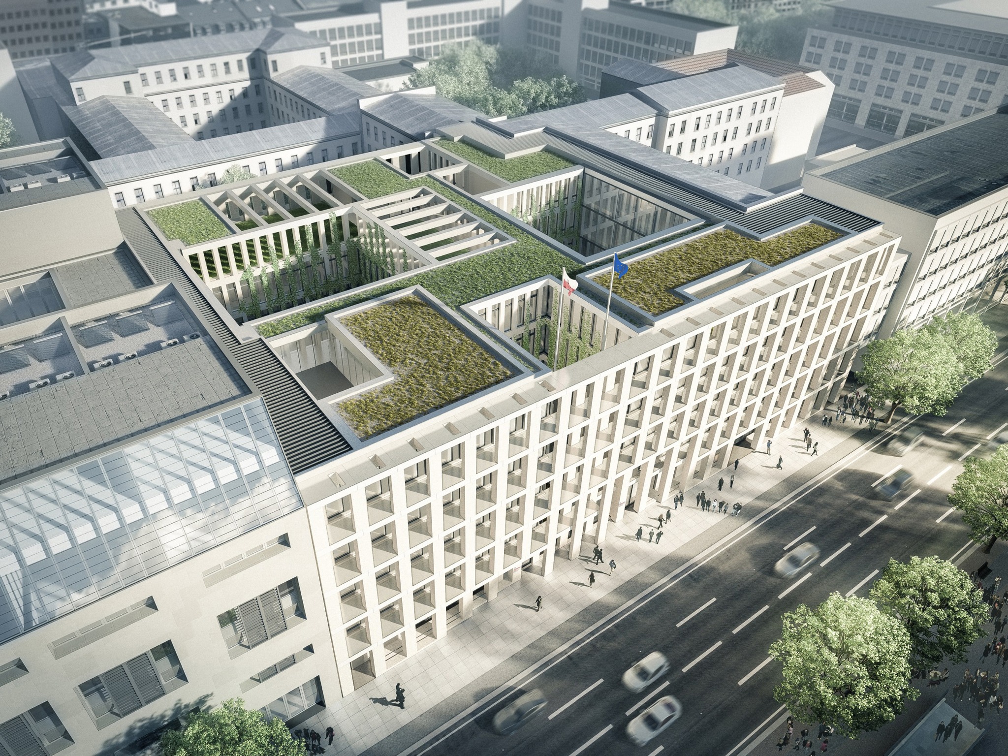 Reprezentacyjny, nowy gmach Ambasady RP powstaje w miejscu, w którym do końca lat 90. mieściła się placówka dyplomatyczna Polski przy alei Unter den Linden. Za koncepcję i projekt architektoniczny odpowiada pracownia JEMS Architekci sp. z o.o.