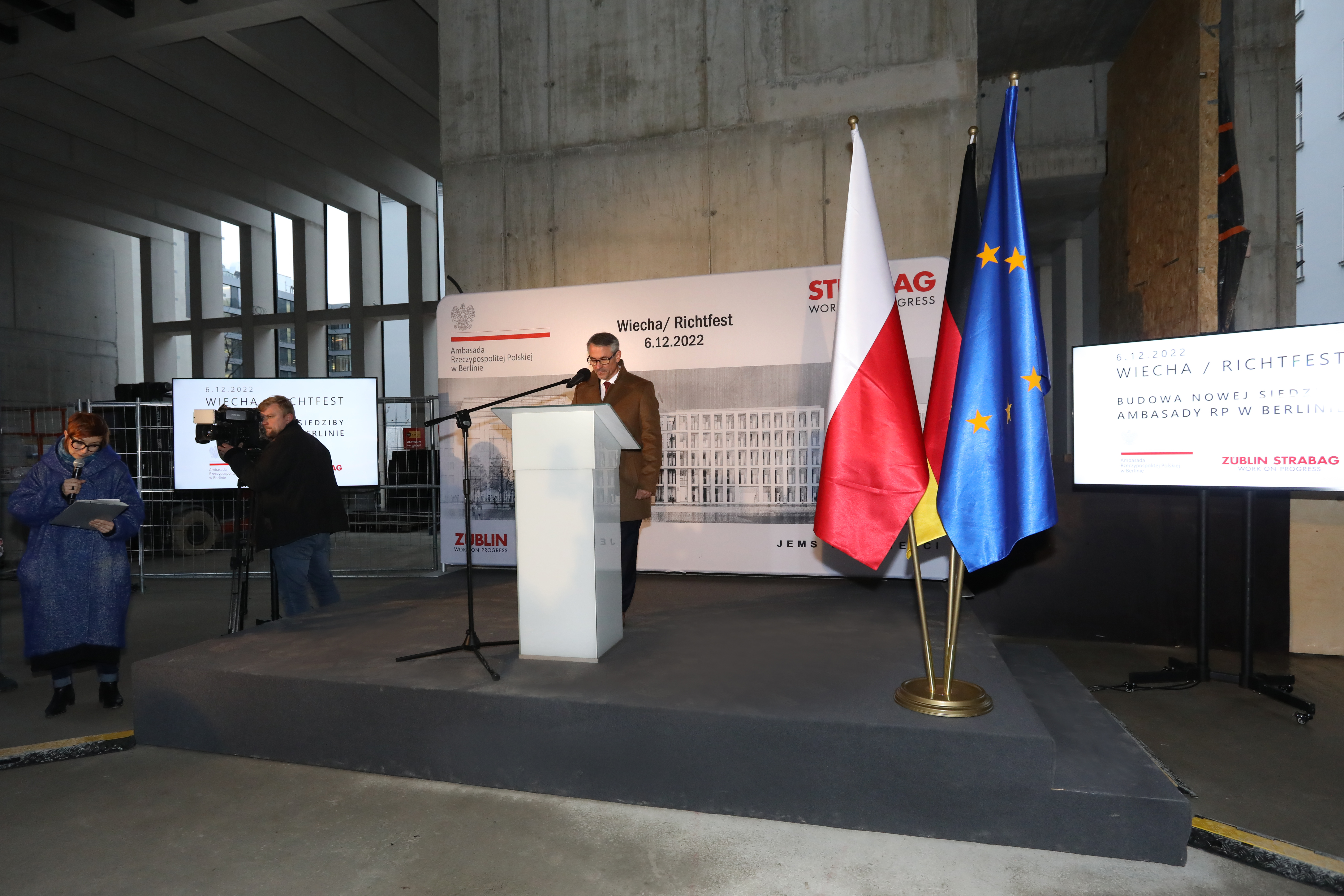 „Zakończenie budowy nowej siedziby Ambasady RP w Berlinie jest projektem absolutnie priorytetowym dla Ministerstwa Spraw Zagranicznych. Będzie to najnowocześniejsza polska placówka poza granicami kraju”, powiedział w trakcie zawieszenia wiechy Sekretarz Stanu w MSZ Arkadiusz Mularczyk.