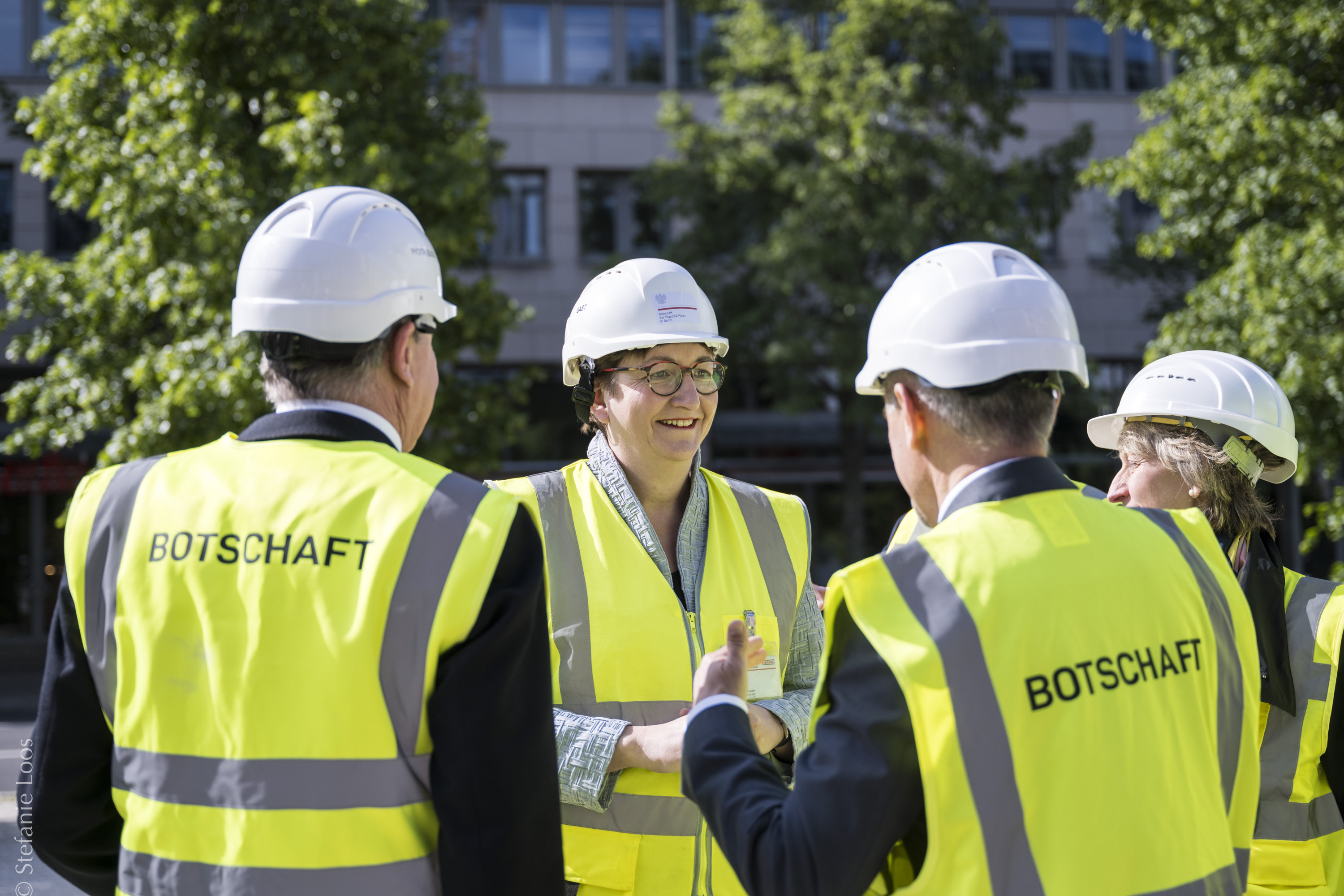 17 maja 2023 r. Minister Klara Geywitz wraz z towarzyszącą delegacją z Ministerstwa Mieszkalnictwa, Rozwoju Miast i Budownictwa odwiedziła plac budowy nowej siedziby Ambasady RP w RFN. Gospodarzem spotkania był Ambasador RP Dariusz Pawłoś.