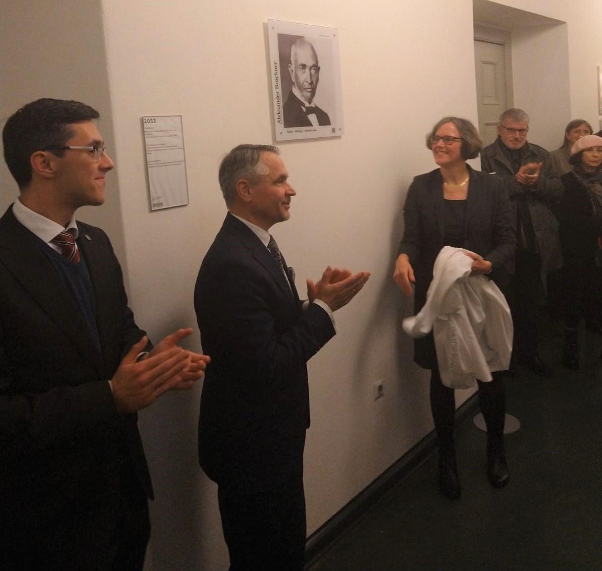 11 grudnia br. na Uniwersytecie Humboldtów odsłonięto tablicę pamiątkową poświęconą prof. Aleksandrowi Brücknerowi (1856-1939), jednemu z najbardziej znanych badaczy polskiej literatury i kultury. Uroczystego aktu dokonali Ambasador RP w Niemczech Dariusz Pawłoś, Pełnomocnik Prezesa Rady Ministrów ds. reformy regulacji administracyjnych związanych z ruchem naturalnym ludności i ochrony miejsc pamięci Wojciech Labuda oraz Rektor Humboldt-Universitӓt zu Berlin prof. Julia von Blumenthal.