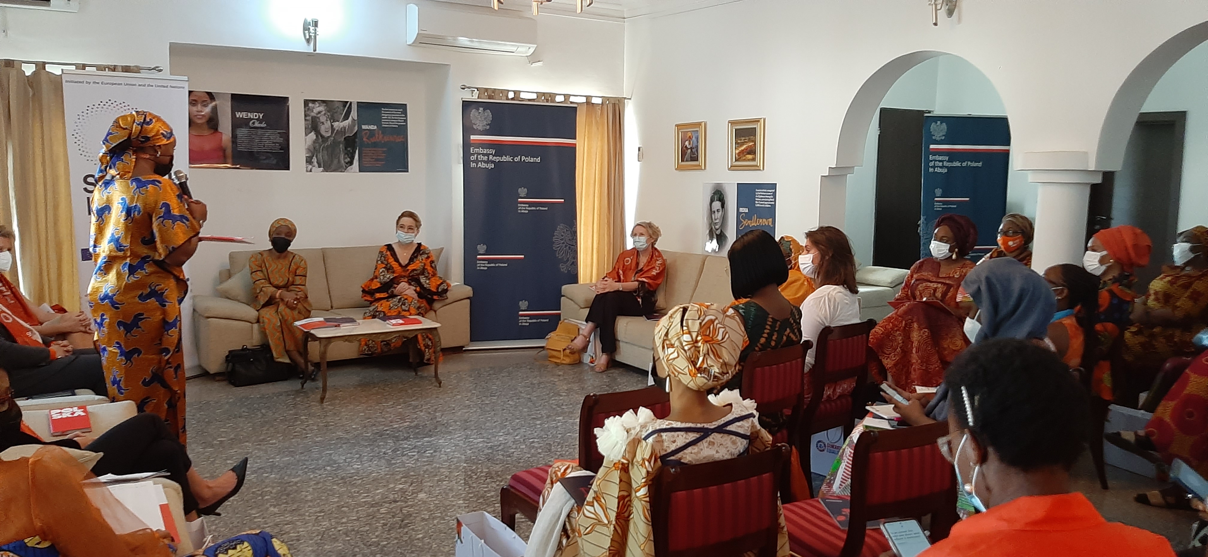 The Embassy of the Republic of Poland together with UN Women Nigeria invited ambitious Nigerian women aspiring to the role of leaders and social activists to participate in all-day workshops in order to gain knowledge and tools to strengthen their potential. During the event, women could get to know selected female figures from Polish history thanks to the distribution of the publication "Outstanding Polish Women". We were honored to welcome many distinguished guests including: Nigerian Minister for Women, H. E. Dame Pauline Tallen, UN Women Representative, Comfort Lamptey, Hon. Aishatu J. Dukku- Chairman, Committee on electoral matters, House of Representatives, Vivianne Ihekweazu, managing director Nigeria Health Watch, women ambassadors from Germany, Finland, Ireland, Malaysia, consul from Colombia, representative of the EU Delegation in Abuja. The workshops were conducted by an experienced forensic psychologist, dr. Fatima Aliku from Neem Foundation. The special guest of the workshop was a Polish-Nigerian singer and composer, Ifi Ude, who shared her experience during an online video conversation and gave the participants tips on how to develop their own careers.