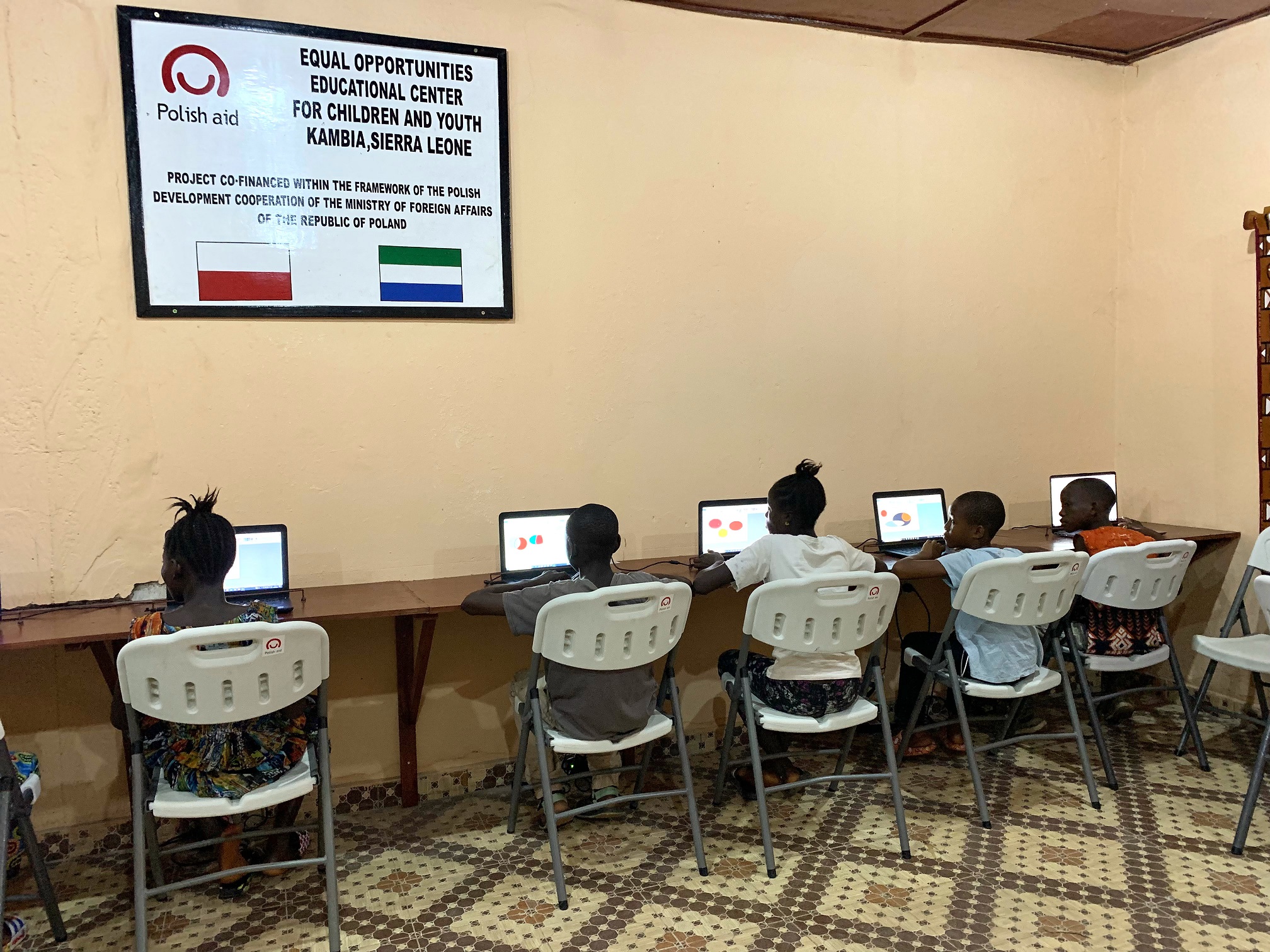 The project is part of the flagship program of the Sierra Leone government called "Free and Good Quality Education" and aims to provide equal educational opportunities for children and youth. An Educational Center was established in the premises of the Catholic mission led by Polish priests in the parish of St. Augustine in Kambia, where primary school students will be able to take additional remedial classes. As part of the project, volunteers of the Center were trained, who will develop a special program of activities for all those interested. The Catholic parish in Kambia works with the Sierra Leone government and runs nearly 30 school facilities, providing basic education to nearly 20,000 children and adolescents. Thanks to the establishment of the Educational Center, also talented young people will have the opportunity to deepen their knowledge. The project consisted in renovating the existing building, renovating toilets and showers, purchasing furniture, teaching materials and providing computers. Additionally, the purchase and installation of solar panels was financed to ensure the continuity of the Center's operation.