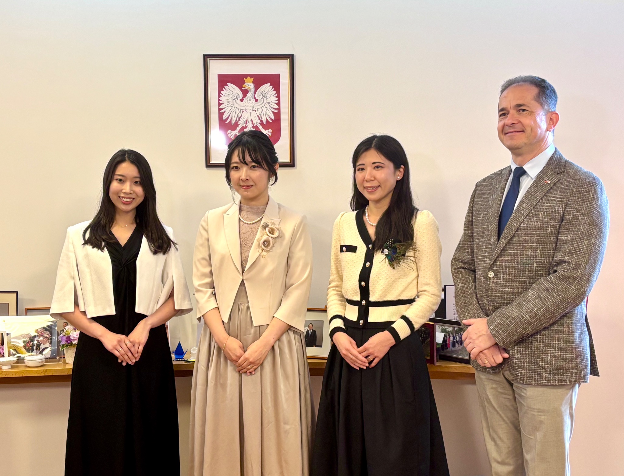 2025年6月5日、駐日ポーランド共和国大使館において「羽ばたく女性研究者賞(マリア・スクウォドフスカ=キュリー賞)」授賞式が開催されました。本賞は駐日ポーランド共和国大使館の発意により国立研究開発法人 科学技術振興機構(JST)との協働で2021年に創設されました。今後、国際的に多大な価値と可能性の見込まれる研究に携わる、傑出した日本の若手女性研究者を表彰することを趣旨としています。同時に、ポーランド出身であり、二度ノーベル賞を受賞したマリア・スクウォドフスカ=キュリーの功績を伝え、日本の女性研究者の国際的な研究を推進しています。第4回を迎えた授賞式は、今年も高円宮妃殿下が名誉総裁を務められました。更に、ポーランド共和国科学・高等教育大臣および日本の文部科学省の後援を受け、国立研究開発法人科学技術振興機構、文部科学省、外務省をはじめ、日本およびポーランドの科学および文化界から60名以上の来賓が出席されました。受賞者インタビューならびに式典の模様はNHKはじめ大手テレビ局、新聞各社に報道されました。