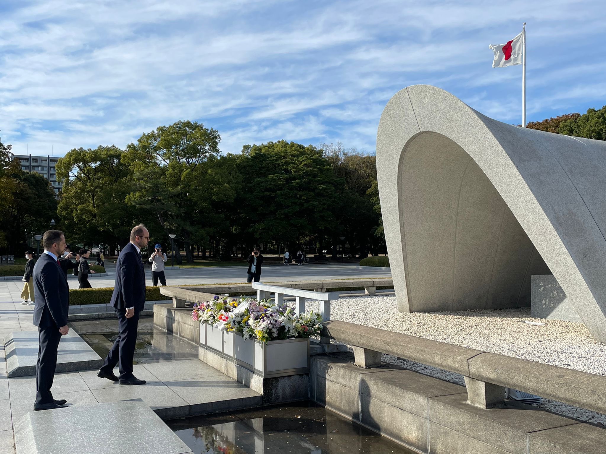 プシダッチ外務副大臣は広島で、苅田知英氏のポーランド共和国名誉総領事就任式にも参加し、また最初の原爆の犠牲者となった方々の慰霊碑へ献花を行いました。