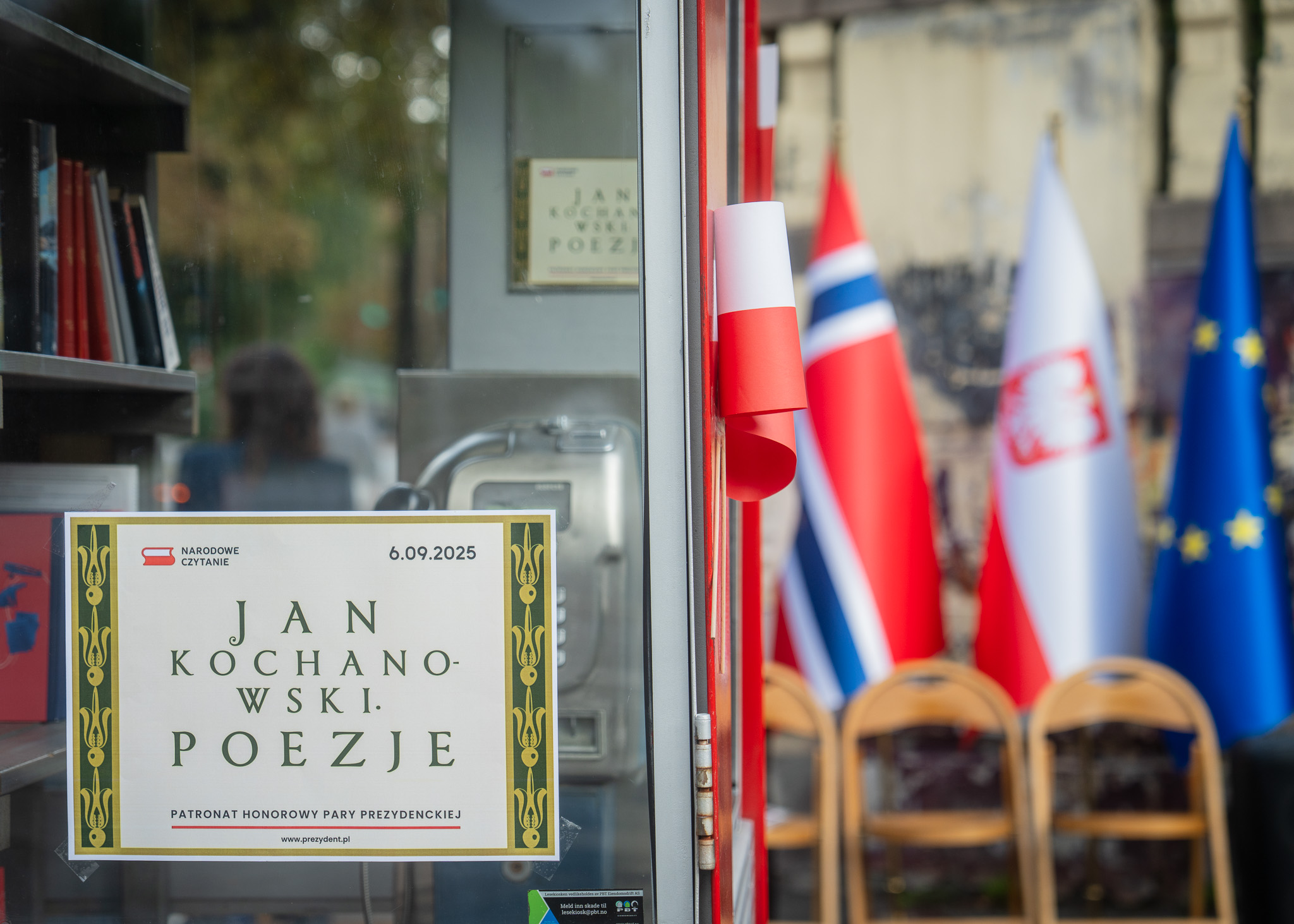 Wiersze Jana Kochanowskiego odczytywane były przez ok. 20 lektorek i lektorów z grona nauczycieli i uczniów Szkoły Polskiej im. Bohaterów Narwiku przy Ambasadzie RP, miejscowej Polonii i zespołu Ambasady. Wydarzenie odbyło się w miejscu publicznym, na placu pod murem Ambasady, w godzinach szczytu (18.00-19.00), tak by maksymalnie zwrócić uwagę licznych o tej porze przechodniów. W tym samym miejscu znajduje się dawna budka telefoniczna, zamieniona w „kiosk czytelniczy” („lesekiosk 78”) z darmowymi książkami, którą – w ramach odrębnego projektu – na mocy porozumienia z norweską fundacją zaopatrujemy w polskie książki. Na okoliczność Narodowego Czytania budkę przyozdobiliśmy w chorągiewkami w polskich barwach narodowych, pozostałe dekoracje zapewniły Szkoła Polska im. BN i Ambasada.