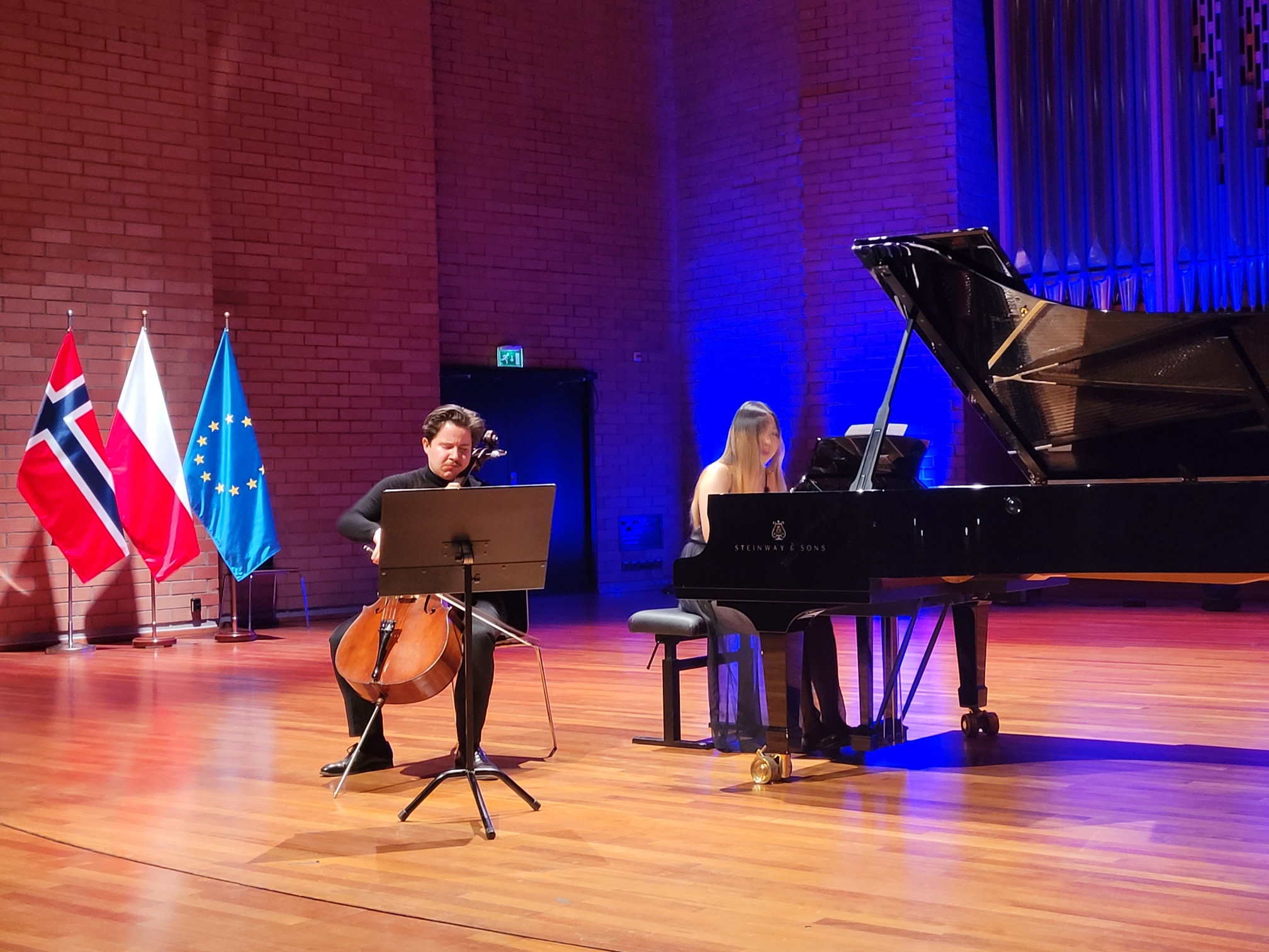 Studenci Akademii profesjonalnie i poruszająco wykonali utwory polskich i norweskich kompozytorów - Chopina, Szymanowskiego, Teleffsena i Tveitta, wzbudzając aplauz licznie zgromadzonej publiczności. Szczególne wzruszenie wywołało wykonanie w języku polskim 4 pieśni F .Chopina (Życzenia, Mojej pieszczotki, Dumki i Gdzie lubi) przez pochodzące ze Szwecji studentki Akademii: Lisę Lindblom i Siri Krosness przy akompaniamencie polskiej studentki Karoliny Le oraz brawurowe wykonanie utworów G. Tveitta przez Oskara Abela Valand Halvorsena.