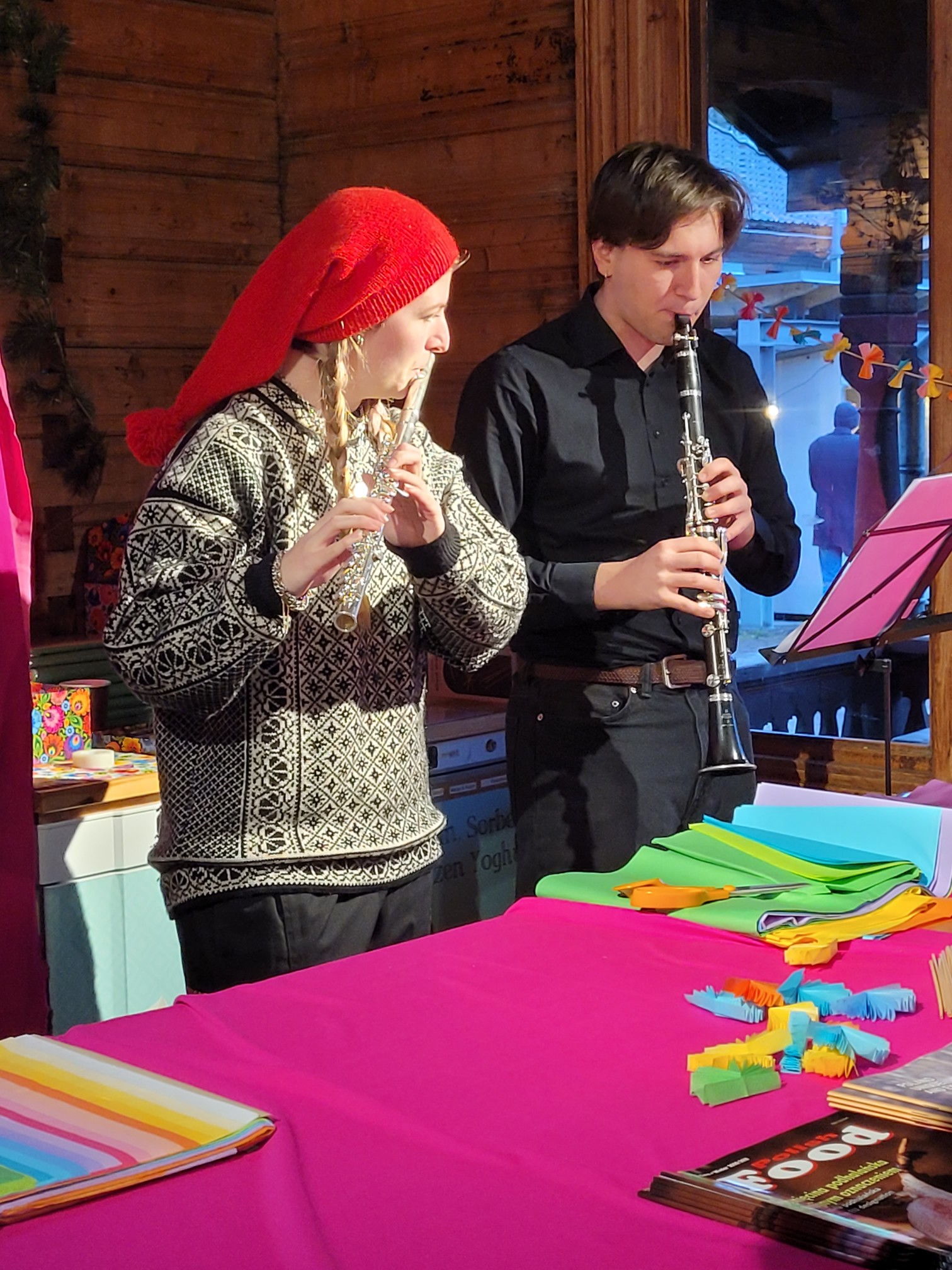 W tle można było posłuchać polskich kolęd, w tym przez pierwszy weekend również na żywo w wykonaniu uczniów szkoły muzycznej z Nordre Follo (klarnet i flet). Z kolei 13.12 w Kirkekunst (sala wystawiennicza na terenie muzeum) odbył się koncert polskiego uznanego pianisty bluesowego Barta Szopińskiego i norweskiego gitarzysty rockendrollowego Erika Slim Zahla, promujący ich nowy singiel “This O’ Merry Christmas” z najnowszego, świątecznego albumu artystów. Koncert zgromadził 140 słuchaczy, mimo że zainteresowanych było znacznie więcej osób. Z powodów bezpieczeństwa nie zdecydowano się na ich wpuszczenie na salę, przekierowując na balkony piętro wyżej. Koncert został b. dobrze przyjęty i zakończył się bisem.