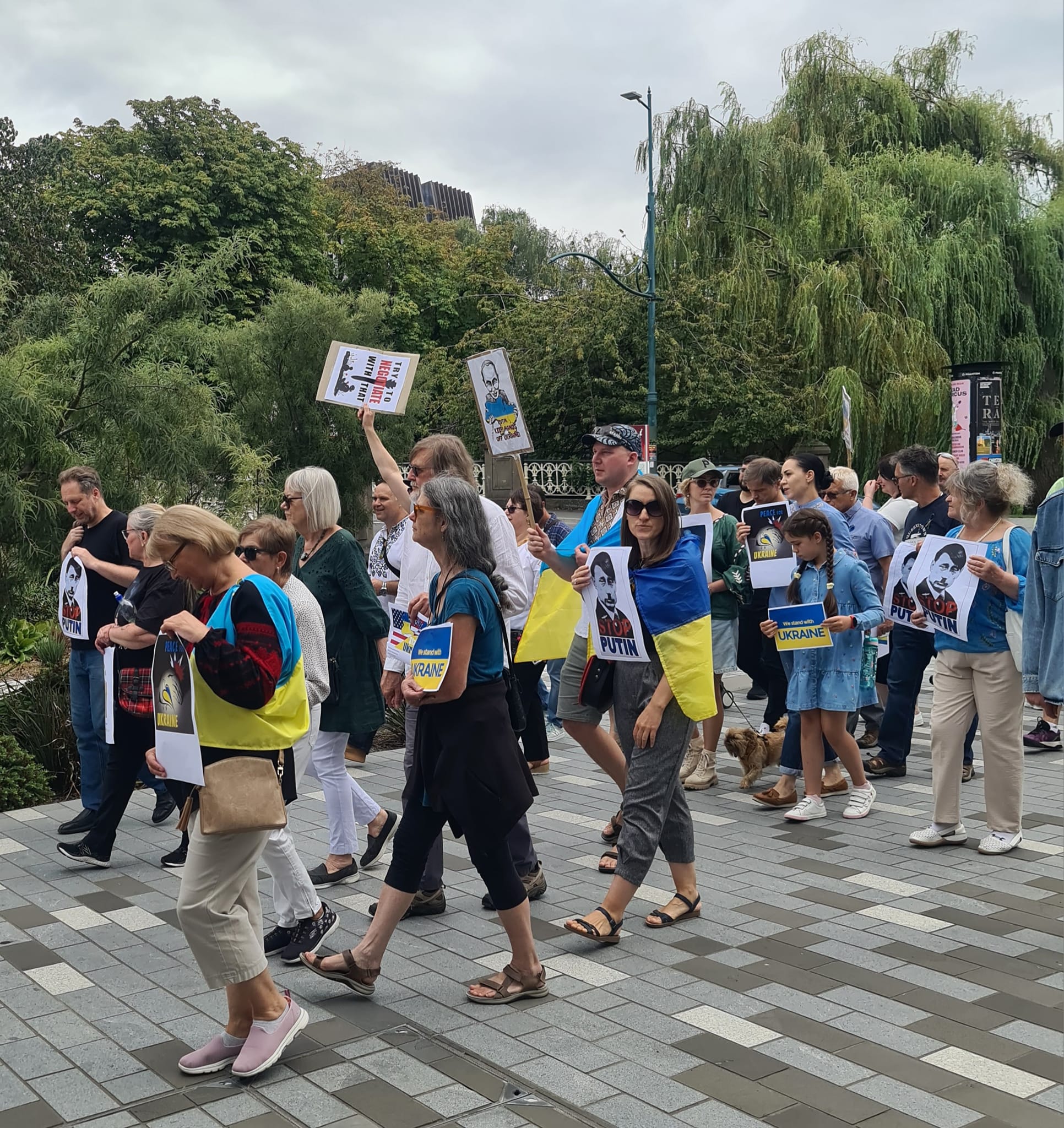 Również w Christchurch miała miejsce, zorganizowana przez lokalną społeczność ukraińską, demonstracja przeciwko trwającej agresji rosyjskiej. Wśród uczestników byli przedstawiciele Polonii jak członkowie Koła Stowarzyszenia Polskich Kombatantów na Wyspę Południową oraz Konsul Honorowa RP w Christchurch, Winsome Dormer. Przemówienie w imieniu lokalnej społeczności polskiej wygłosił Krzysztof Pawlikowski, prezes Koła SPK.
