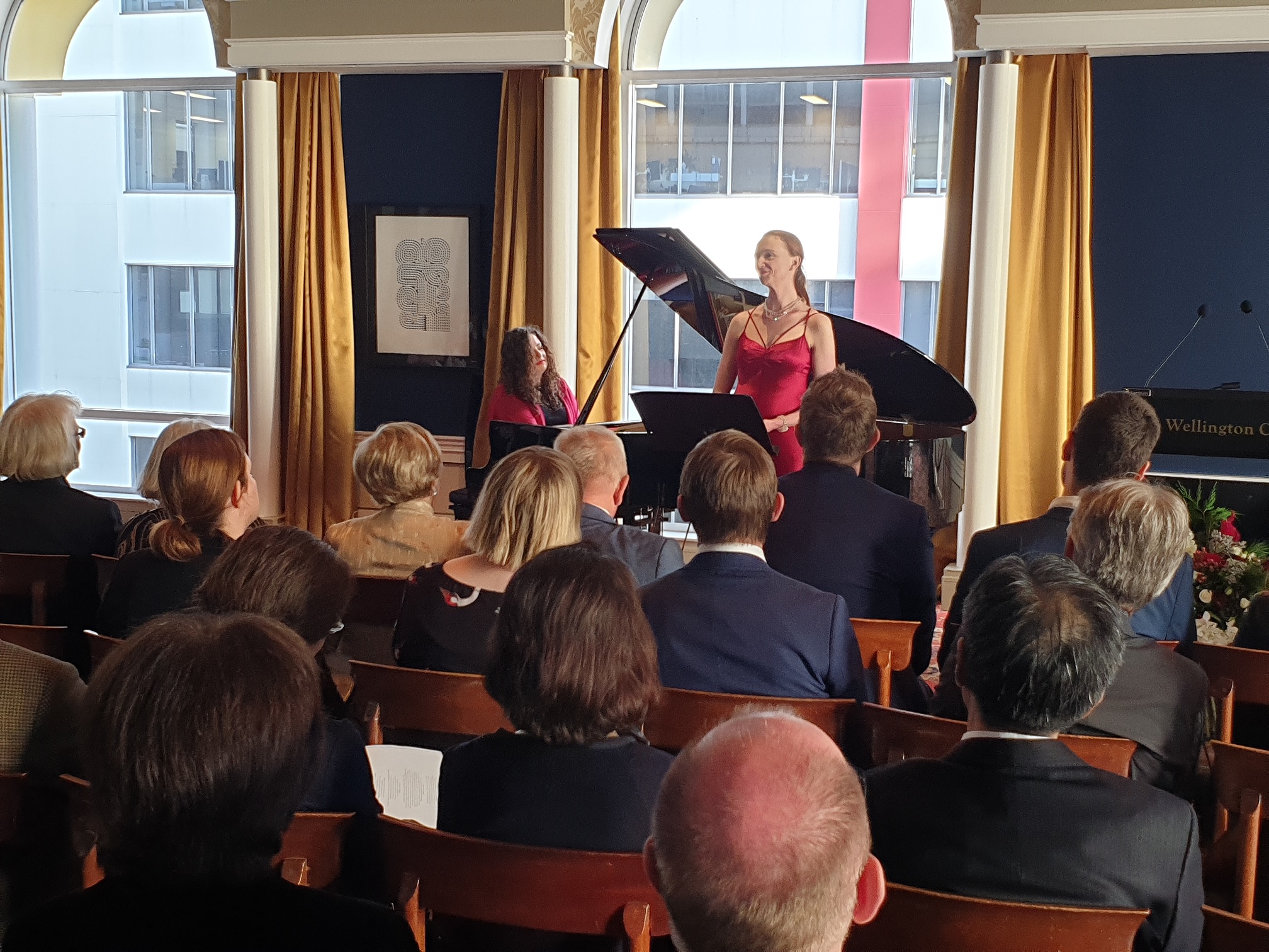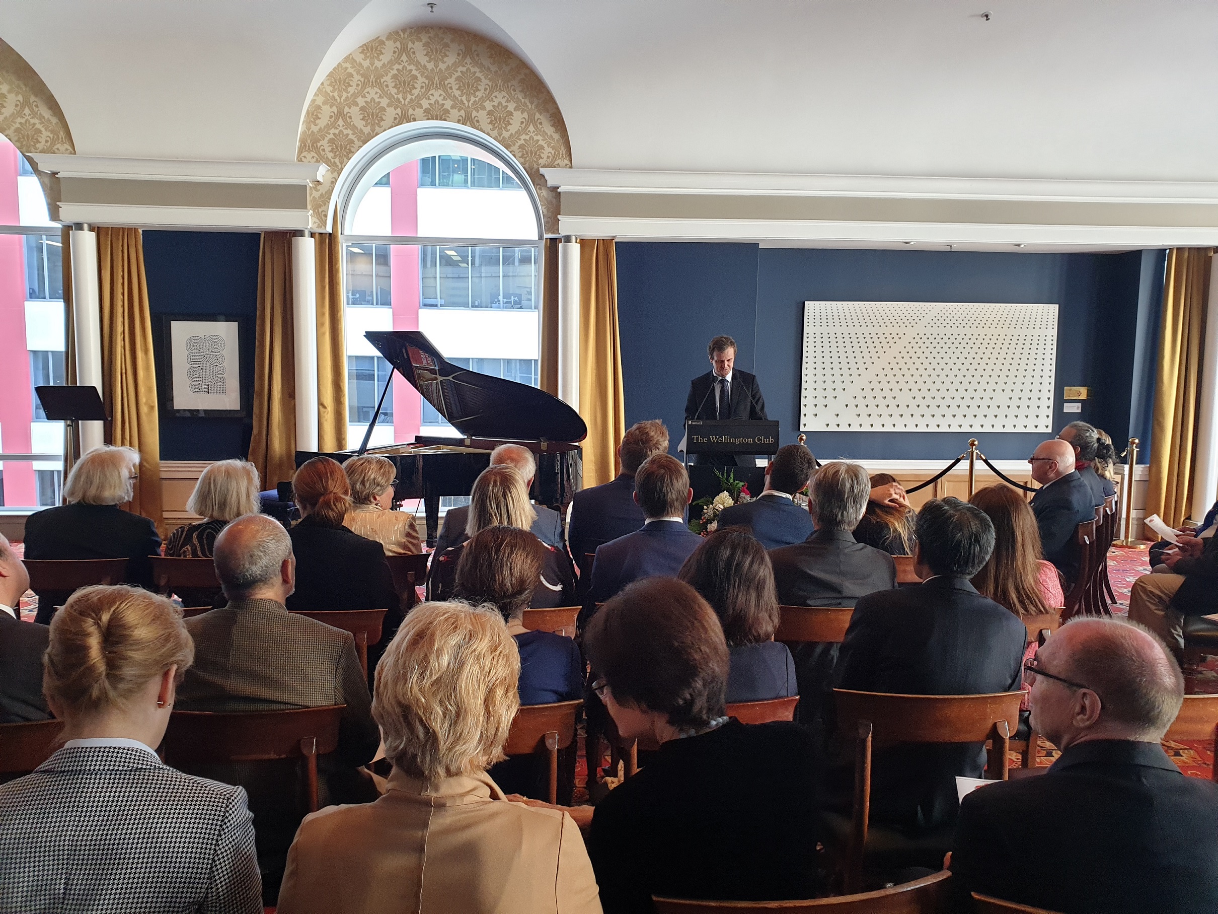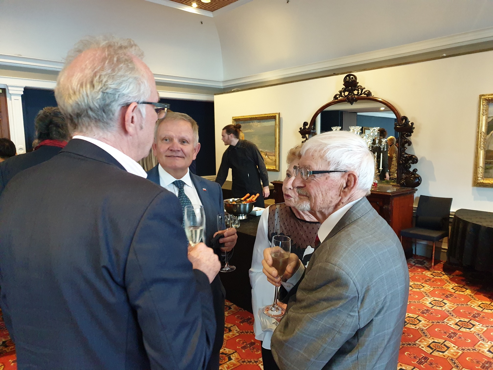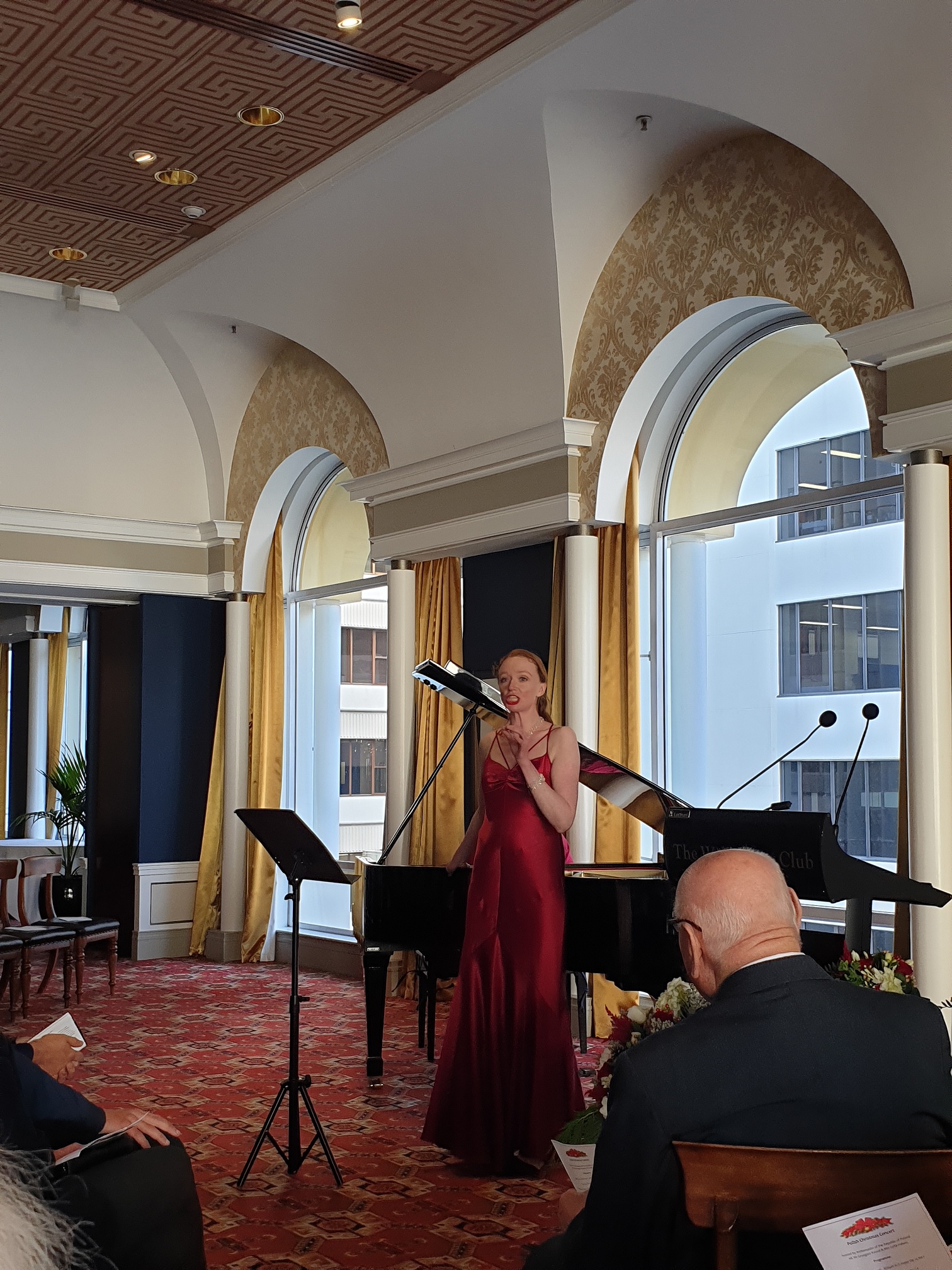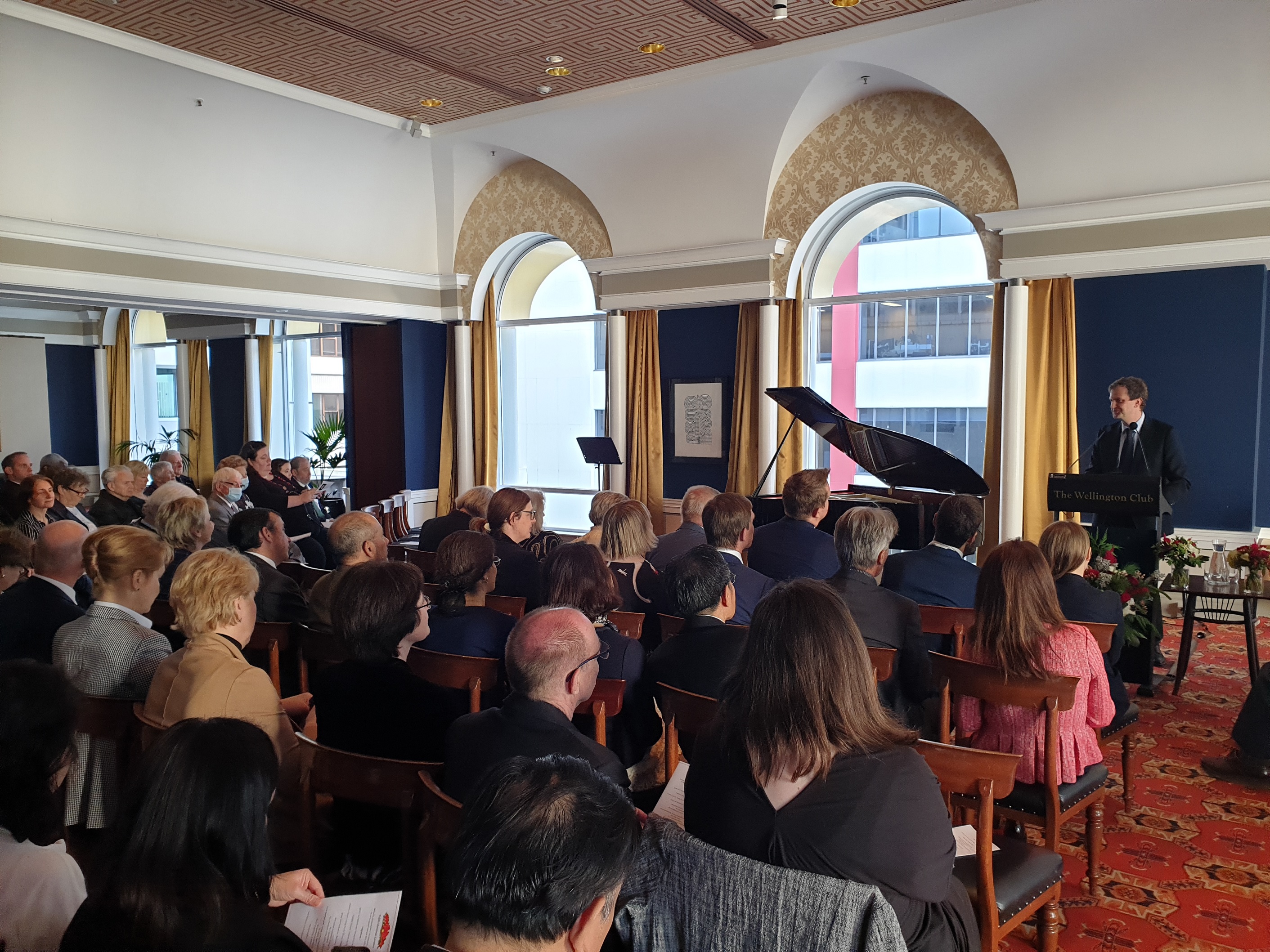 Otwierając wieczór, Ambasador RP Grzegorz Kowal przywitał wszystkich gości i przedstawił prezentowanych kompozytorów, m.in. Fryderyka Chopina i Ignacego Jana Paderewskiego. Paderewski dwukrotnie odwiedził Nową Zelandię - w 1904 i 1927 roku. Lektura nowozelandzkiej prasy pozwala zobaczyć, jak wielką sławą cieszył się Paderewski. Trasa koncertowa pianisty obejmowała występy w Auckland, Wellington, Christchurch i Dunedin. - powiedział ambasador RP o wizytach Paderewskiego w Nowej Zelandii. Ambasador Kowal również złożył wszystkim obecnym życzenia świąteczne.
