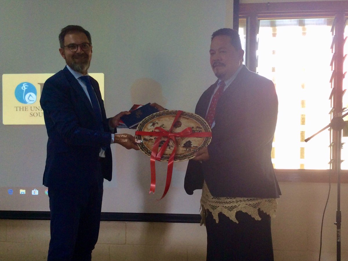 Ponadto Ambasador RP spotkał się z kadrą i studentami Uniwersytetu Południowego Pacyfiku w Nuku’alofa. Prezentacja „Polska w ONZ i UE” i dyskusja ze studentami obejmowała działania i osiągnięcia Polski jako członka organizacji międzynarodowych oraz relacji dwustronnych z Nową Zelandią i Tonga.