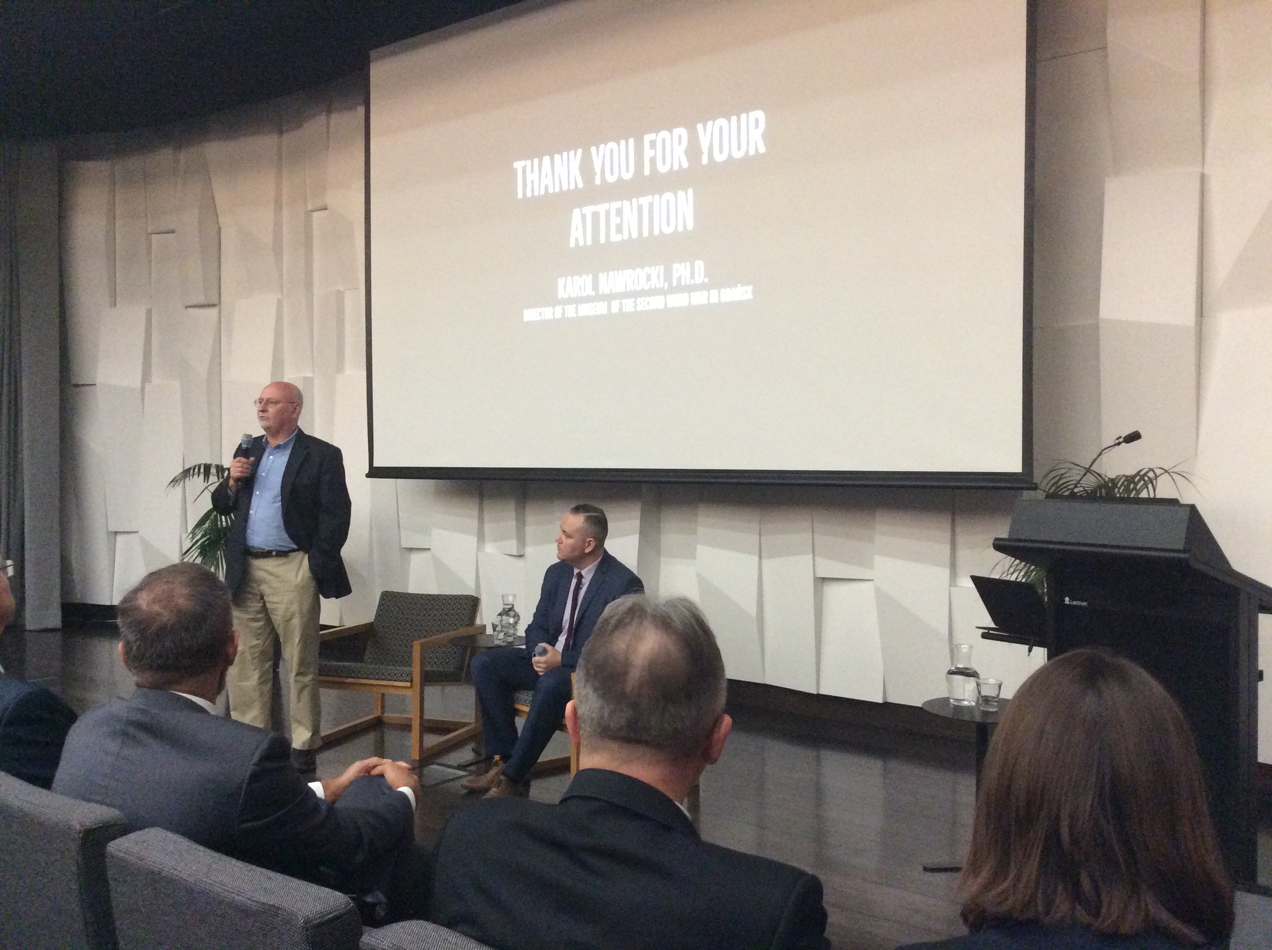 Spotkanie w auli Biblioteki Narodowej otworzył dyrektor Bill Macnaught, a gości przywitał Ambasador RP Zbigniew Gniatkowski. Dr Karol Nawrocki mówił między innymi o korzeniach tragicznego konfliktu: "Warstwy filozoficzne, umiłowanie terroru i wojny, śmiercionośna niechęć do konkretnych klas, narodowości i całych grup społecznych spotkały się w wymiarze praktycznym. Współpraca komunistów z nazistami przybrała najbardziej praktyczną formę 23 sierpnia 1939 roku – wówczas podpisano Pakt Ribentropp-Mołotow, który poprzez 300 słów w głównym korpusie oraz 4 paragrafy tajnego aneksu zdemolował porządek w Europie środkowo-wschodniej, stając się jednocześnie kamieniem milowym w drodze do II wojny światowej. Oba totalitarne reżimy – nazistowskie Niemcy i sowiecka Rosja – dokonały rozbioru lub najazdu na 6 niepodległych wówczas Państw. Atak na Polskę 1 września 1939 roku stał się początkiem światowego konfliktu.