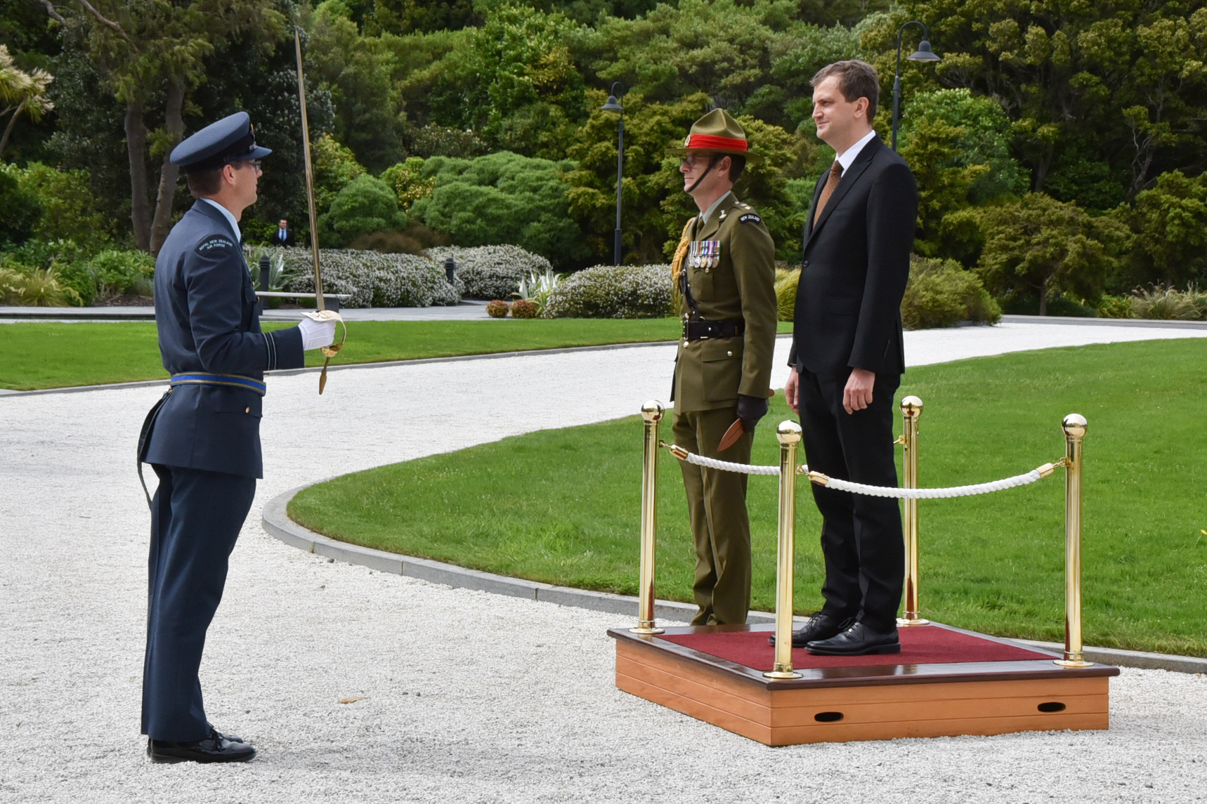 Ceremonia rozpoczęła się od dźwięku hejnału, po którym miało miejsce tradycyjne powitanie maoryskie. Ambasador G. Kowal następnie dokonał przeglądu Gwardii Honorowej.