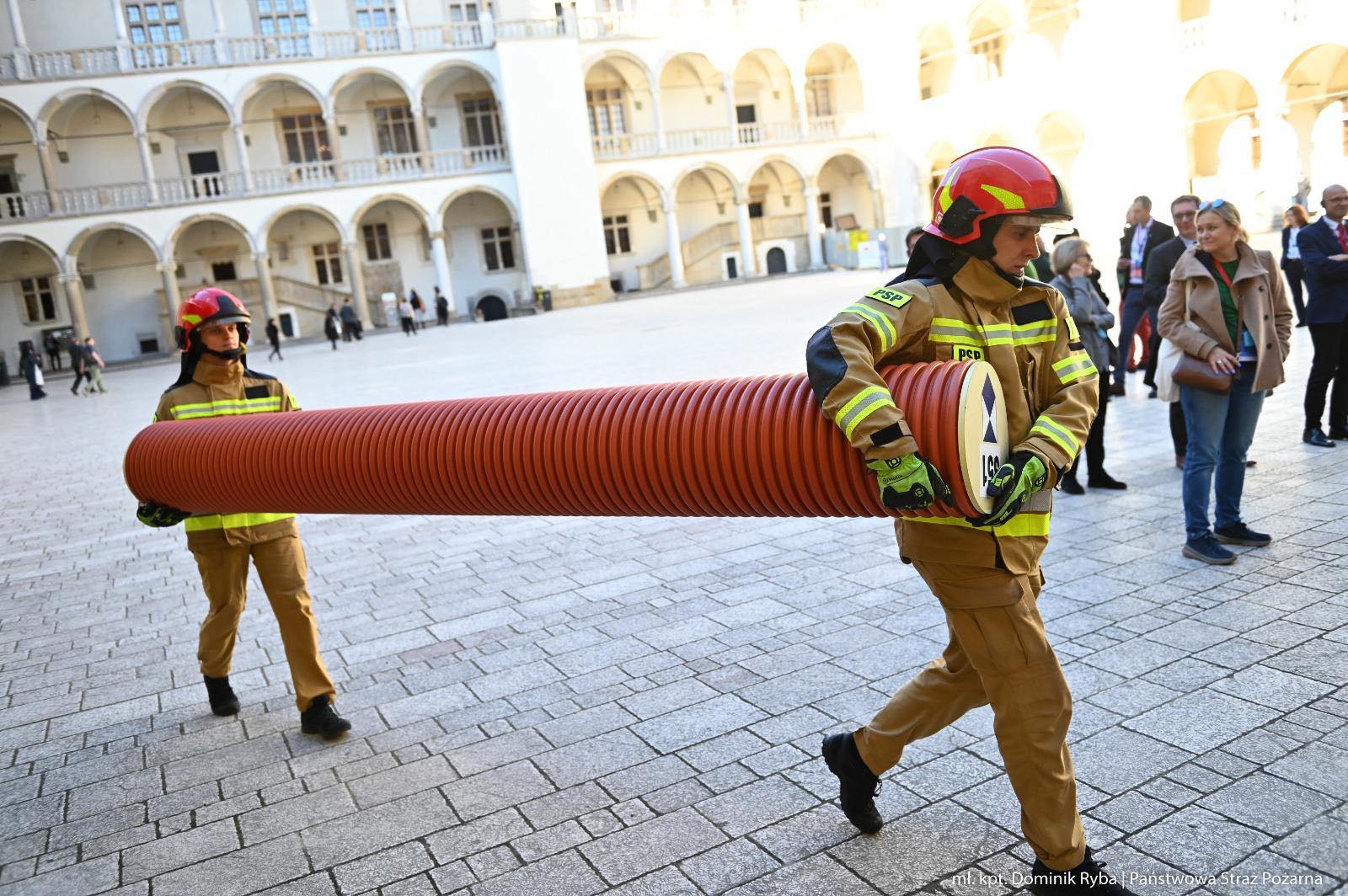 Uczestnicy Forum „Bezpieczne Dziedzictwo Kultury – Europejskie Wyzwania Wojenne i Kryzysowe” wzięli udział także w praktycznych warsztatach dotyczących ochrony i ewakuacji zbiorów Zamku Królewskiego na Wawelu.