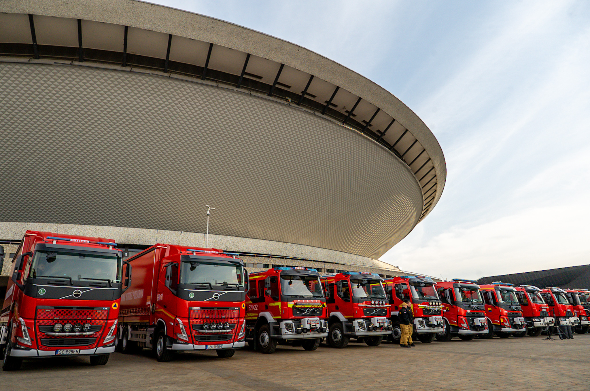 Na Placu Sławika i Antalla przed Halą Widowiskowo-Sportową Spodek w Katowicach odbyła się prezentacja oraz przekazanie nowych samochodów specjalnych i ratowniczo-gaśniczych dla komend Państwowej Straży Pożarnej w województwie śląskim. Pojazdy zostały zakupione w 2025 roku w ramach rządowego Programu Ochrony Ludności i Obrony Cywilnej.