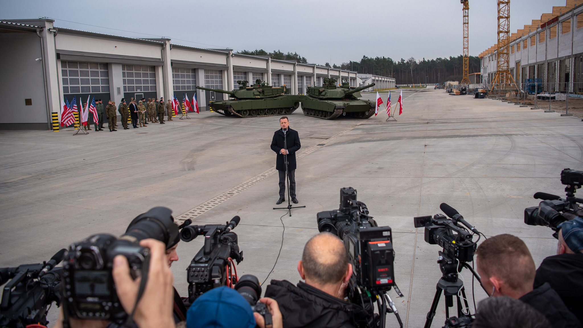Te czołgi trafią właśnie tu, do Wesołej. Czołgi trafią na wschód naszego kraju, tak by skutecznie odstraszać agresora. (…) Dziękuję za naszą współpracę polsko-amerykańską, efektem której jest fakt, że polscy czołgiści już szkolą się na czołgach Abrams, szkolą się na poligonie w Biedrusku, a więc będą mogli płynnie przejąć swoje obowiązki dotyczące właśnie wykorzystania czołgów Abrams, które trafią tu do 1. Warszawskiej Brygady Pancernej. Bardzo dziękuję za tę ścisłą współpracę wojskową polsko-amerykańską. Dziękuję za ćwiczenia, które odbywają się w zasadzie ciągle między wojskami polskimi a amerykańskimi.