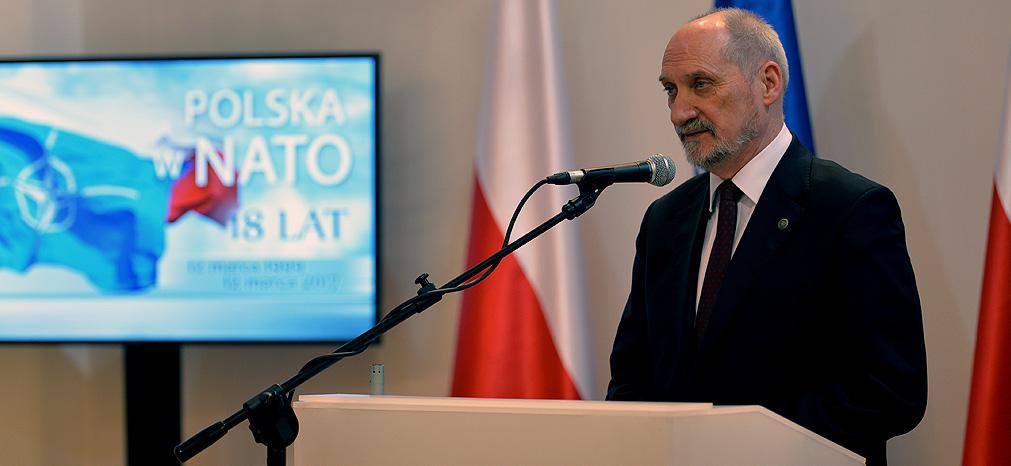 – Dla Polski obecność NATO na terenie flanki wschodniej, na terenie państw Europy Środkowo-Wschodniej, na terenie naszej ojczyzny jest symbolem naszego bezpieczeństwa w równym stopniu jak wzmocniona, zwiększona i zmodernizowana armia polska – powiedział minister obrony narodowej Antoni Macierewicz w 18.rocznicę wstąpienia Polski do Sojuszu Północnoatlantyckiego.