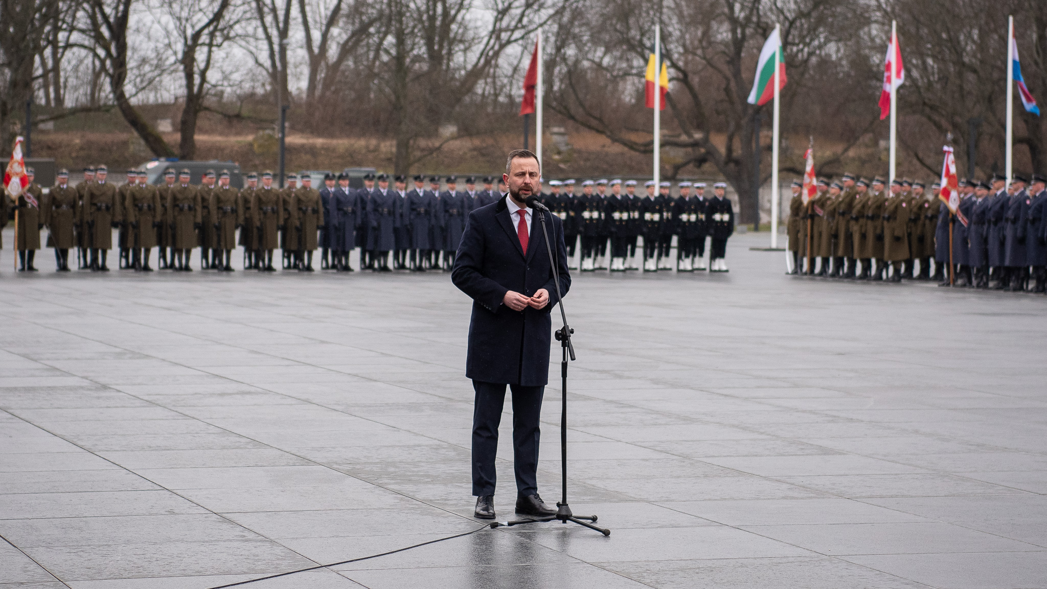 - Chylę czoła przed pokoleniami polskiej wolności, które do tej wolności i suwerenności doprowadziły, które Polskę nam zaniosły i doprowadziły do tego, że mogliśmy przystąpić do najsilniejszego paktu obronnego w naszej cywilizacji, w naszych pokoleniach. To jest wielkie oddanie i pragnę podziękować w imieniu rządu wszystkim obywatelom RP, wszystkim naszym podatnikom, którzy składają się na to, że możemy prowadzić transformację i za wielkie, społeczne przyzwolenie na tę transformację i umacnianie Wojska Polskiego. Chcemy żyć w pokoju, bo znamy cenę wojny. (…) Chylę czoła przed tymi, którzy ponieśli najwyższą ofiarę - swojego zdrowia i życia, służąc wiernie państwu polskiemu. Chylę czoła przed naszymi bohaterami i wszystkimi, którzy sztandar wolności donieśli do dnia dzisiejszego. Cześć i chwała bohaterom. Niech żyje Polska