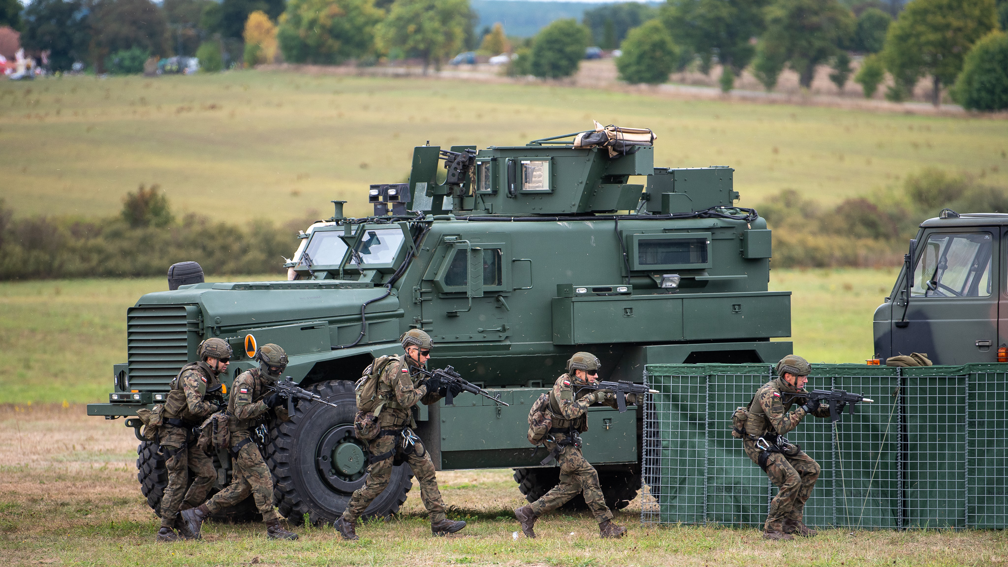Podczas pokazu dynamicznego żołnierze 16. Dywizji Zmechanizowanej nowoczesny sprzęt, który w ramach procesu modernizacji Wojska Polskiego trafił do poległych jednostek. Zdolności obronne Dywizji zwiększają czołgi K-2, wyrzutnie rakietowe HIMARS oraz systemy przeciwlotnicze MAŁA NAREW.