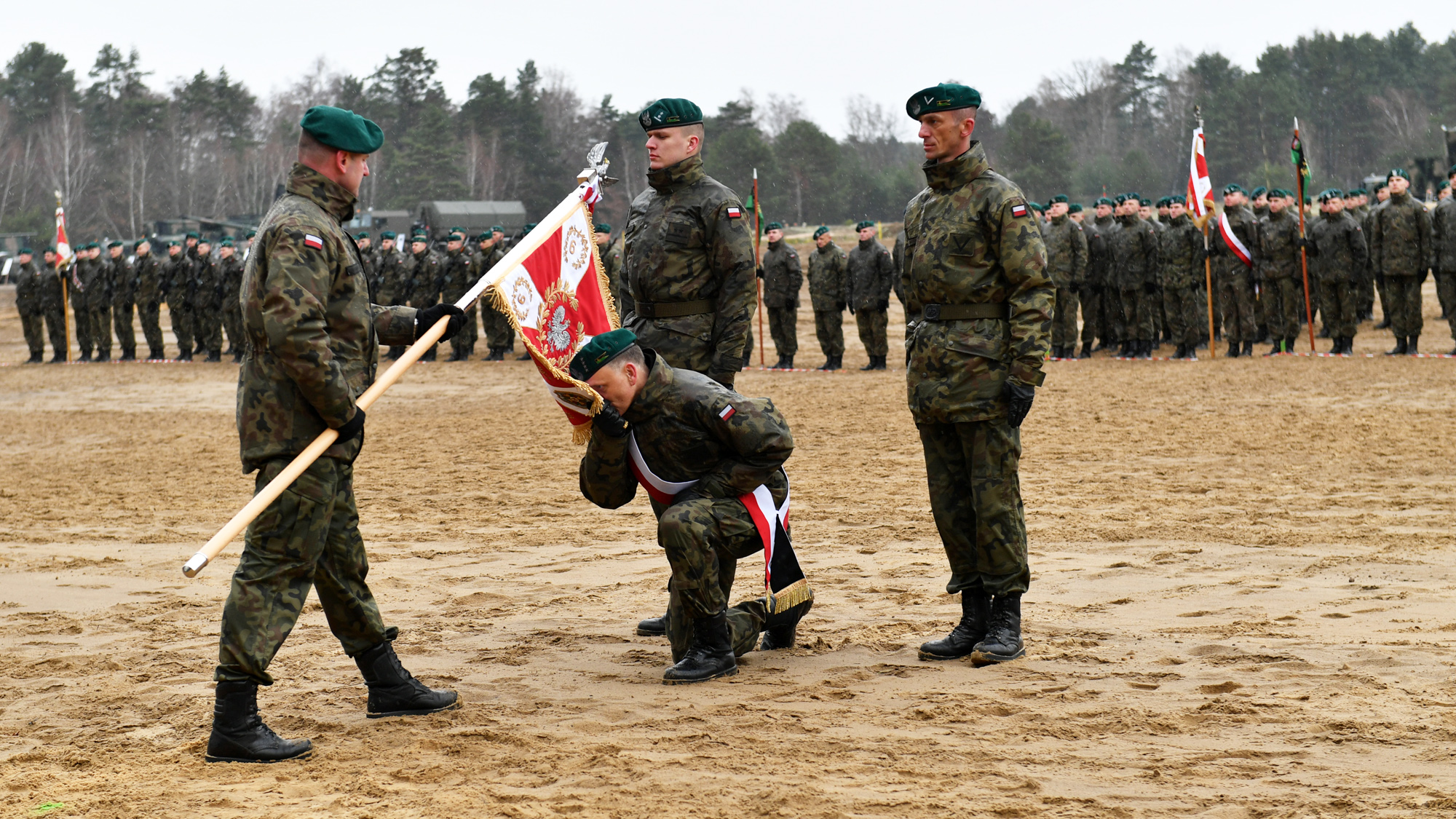 - To rzeczywiście bardzo symboliczna chwila, połączenie tradycji z nowoczesnością. Przed chwilą żołnierze otrzymali sztandar ufundowany przez społeczność lokalną. Sztandar, który zawsze stanowił, stanowi i stanowić będzie źródło dumy, znak honoru, wierności, tradycji historycznej i znak męstwa – mówił podczas ceremonii minister Mariusz Błaszczak.