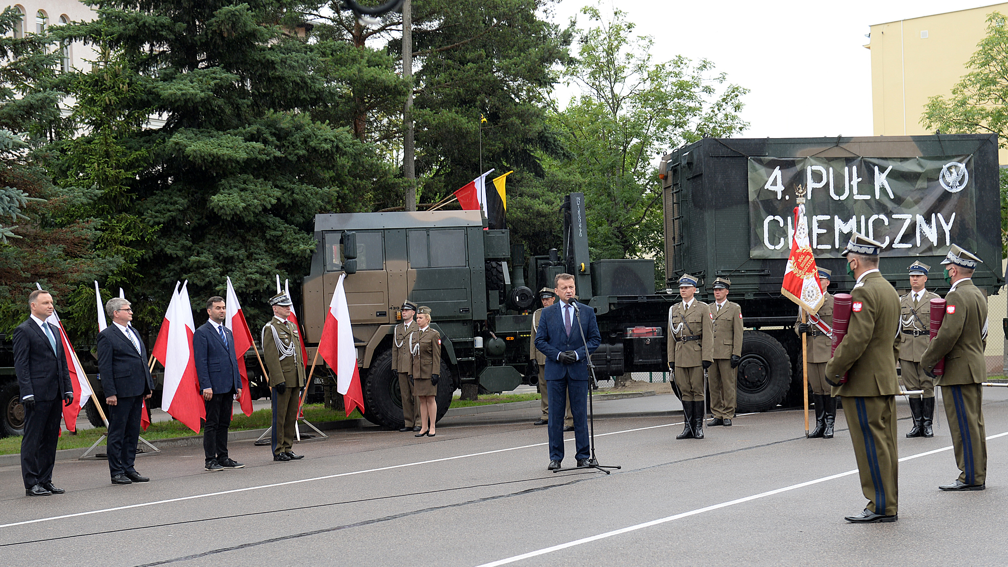 W trakcie spotkania z żołnierzami w Brodnicy minister Mariusz Błaszczak podziękował żołnierzom wojsk chemicznych za ich zaangażowanie w walkę z epidemią koronawirusa. – Żołnierze wojsk chemicznych służyli bardzo ofiarnie, zapewniając bezpieczeństwo osobom, które były poszkodowane w wyniku epidemii. Domy pomocy społecznej były właśnie odkażane przez żołnierzy wojsk chemicznym. Dziękuję wszystkim żołnierzom chemikom za ich ofiarną służbę – mówił minister.