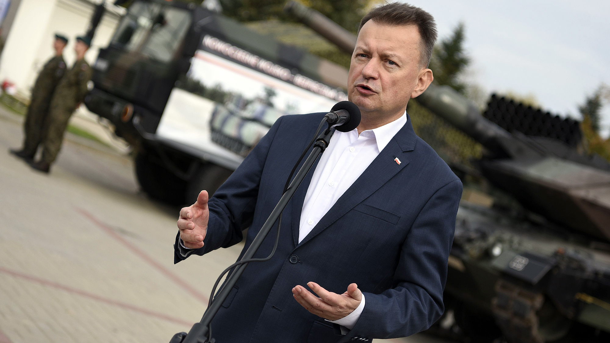 "Przesłanie, z którym zwracam się do Państwa, to budowa silnego Wojska Polskiego, również tu, w Ciechanowie. Województwo mazowieckie, warmińsko-mazurskie i podlaskie to obszary, które powinny być nasycone wojskiem, aby Polska była bezpieczna. Rząd koalicji PO-PSL w 2011 r. postanowił zlikwidować jednostkę wojskową w Ciechanowie, mimo tego, że w 2008 r. Rosja napadła na Gruzję. Na szczęście te czasy są już historią. Kiedy w 2015 r. wybory wygrało PiS, odeszliśmy od tej polityki, którą reprezentowali poprzednicy, czyli rząd koalicji PO-PSL i prezydent Bronisław Komorowski. My postawiliśmy na bezpieczeństwo" - powiedział wicepremier Mariusz Błaszczak podczas wizyty w Ciechanowie.