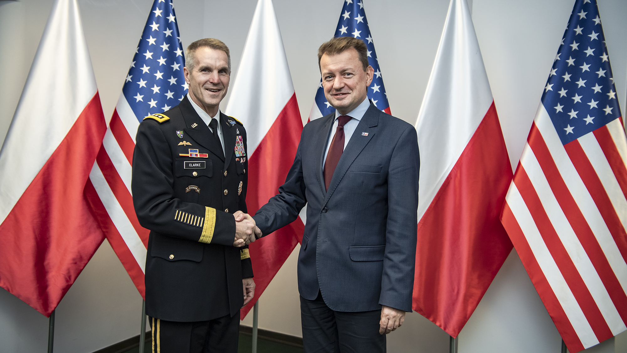 Wspólne szkolenia polskich i amerykańskich żołnierzy wojsk specjalnych były głównym tematem spotkania Mariusza Błaszczaka, ministra obrony narodowej z dowódcą operacji specjalnych USA generałem Richardem D. Clarkem.