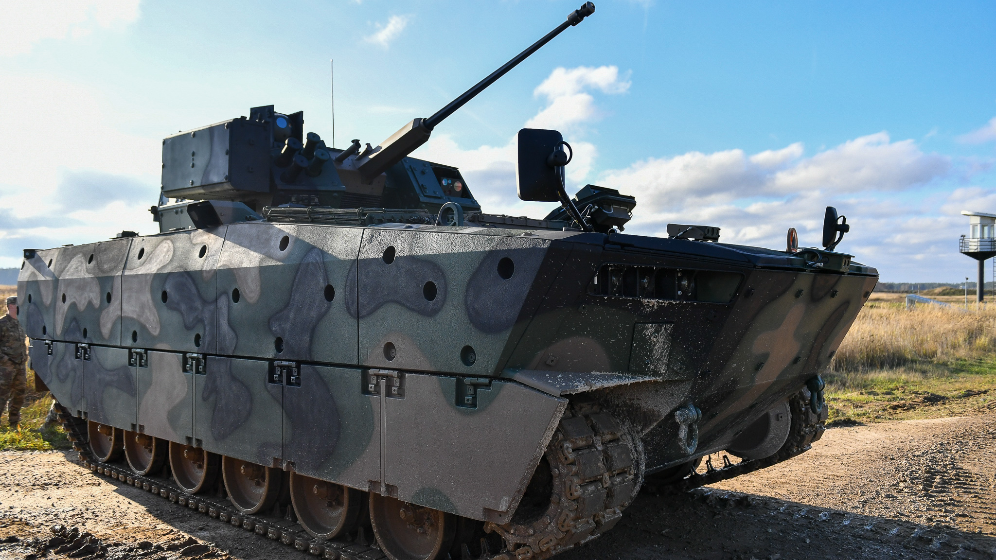 W poniedziałek, 14 listopada br. na strzelnicy czołgowej szef MON obserwował testy nowego, polskiego bojowego wozu piechoty Borsuk w warunkach poligonowych.
