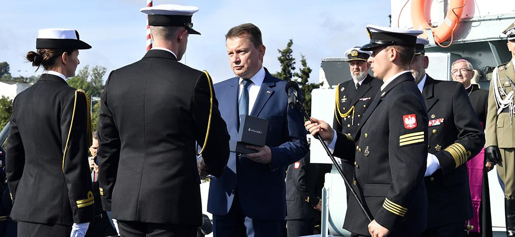 – Pamiętajcie o postawie, jaką nasi przodkowie pokazali 79 lat temu na Westerplatte; pamiętajcie o poczuciu honoru i dumy z tego, że jesteście oficerami Wojska Polskiego, z tego, że jesteście Polakami - powiedział Mariusz Błaszczak, minister obrony narodowej, na promocji oficerskiej marynarzy.