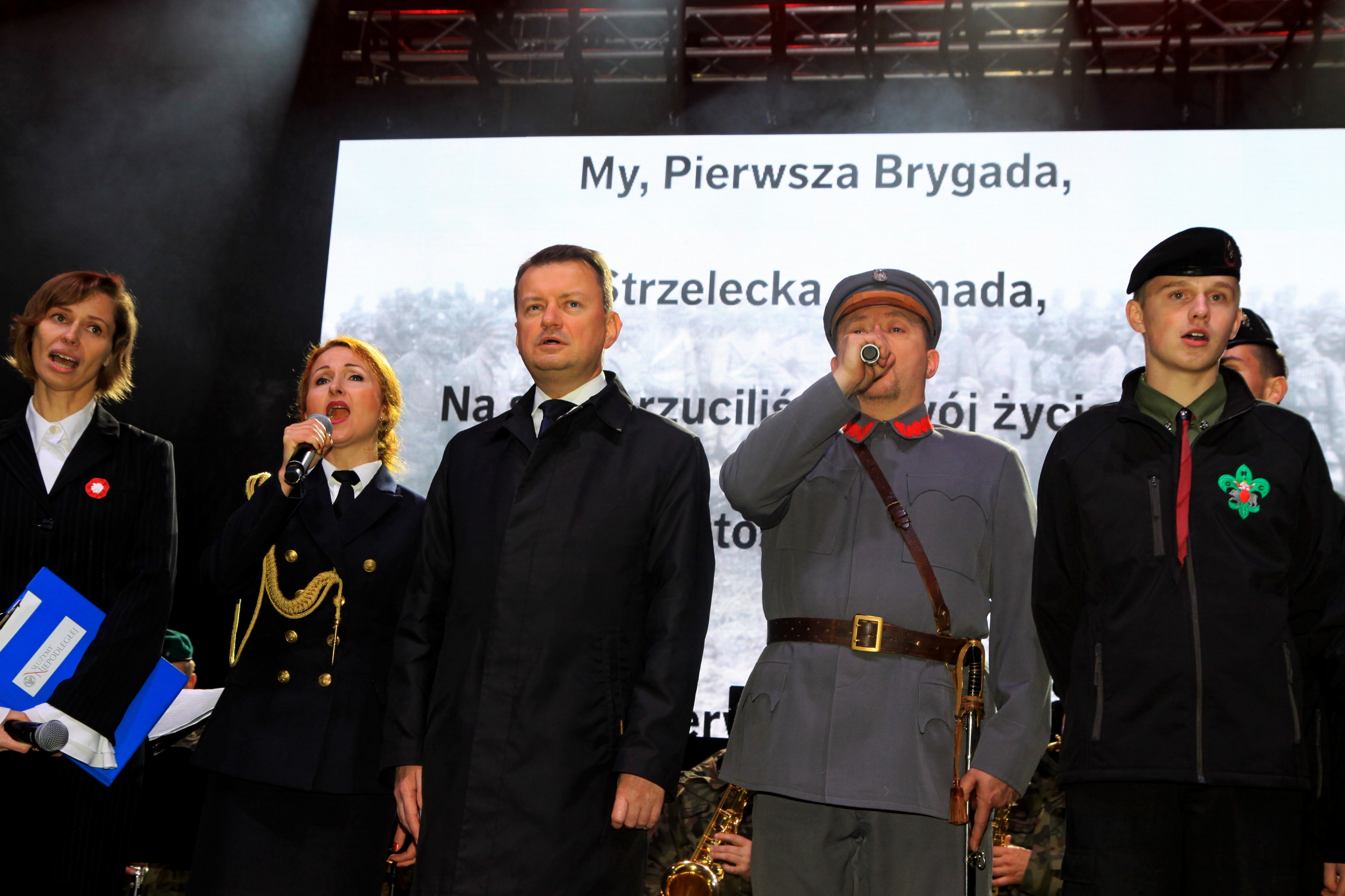 Szef MON wspólnie z uczestnikami pikniku w Warszawie, z akompaniamentem orkiestry wojskowej i chórów wojskowych i szkolnych, zaśpiewał „Marsz Pierwszej Brygady” - pieśń reprezentacyjną Wojska Polskiego. O godzinie 16.00 w całej Polsce zaśpiewano tę pieśń dla uczczenia odzyskania przez Polskę niepodległości.