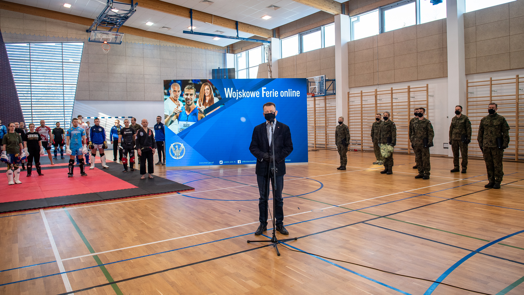 - Dziękuję Państwu - sportowcom w mundurach, którzy zdecydowali się na to, żeby podzielić się tajnikami swoich treningów. Dzięki Wam wiele osób w naszym kraju mogło skorzystać z ćwiczeń fizycznych, mogło zadbać o tężyznę fizyczną. Wszyscy doskonale wiemy, że w zdrowym ciele zdrowy duch – tymi słowami Mariusz Błaszczak, minister obrony narodowej zwrócił się do żołnierzy - sportowców podczas spotkania podsumowującego kolejną edycję Wojskowych Ferii online.