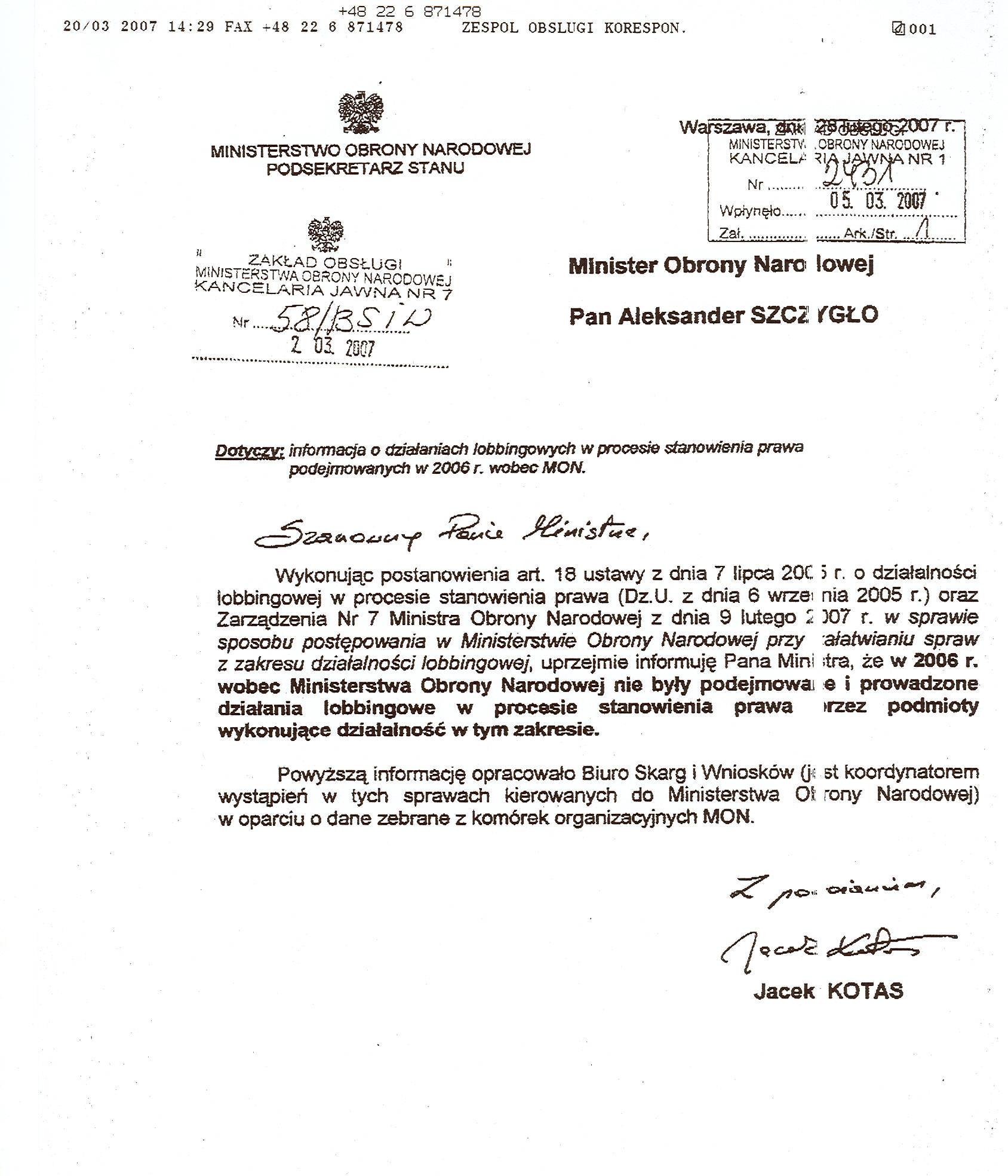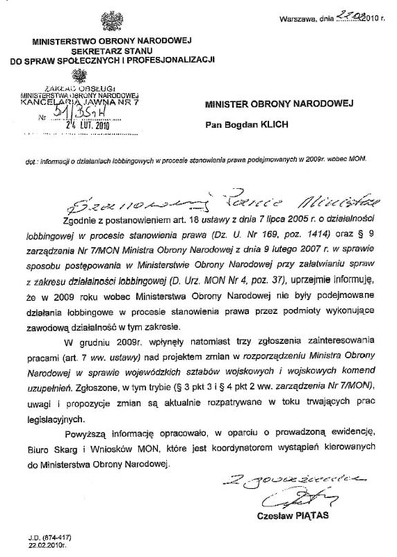| Działania lobbingowe w MON | 1.2 | 06.12.2018 09:06 Jarosław Zeidler |