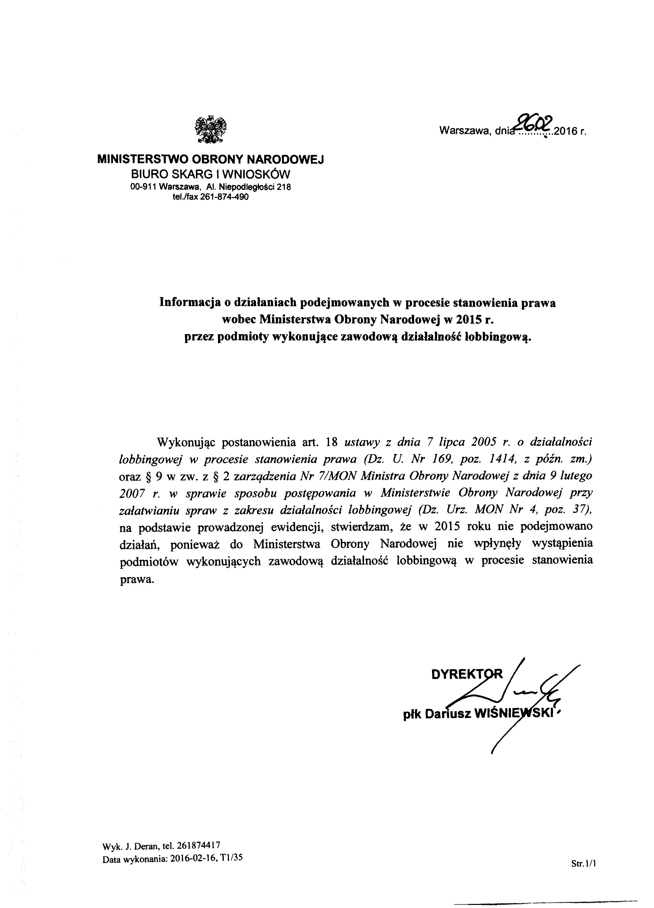 | Informacja o działaniach lobbingowych | 7.0 | 17.12.2025 13:48 plut. Rafał Jóźwiak |