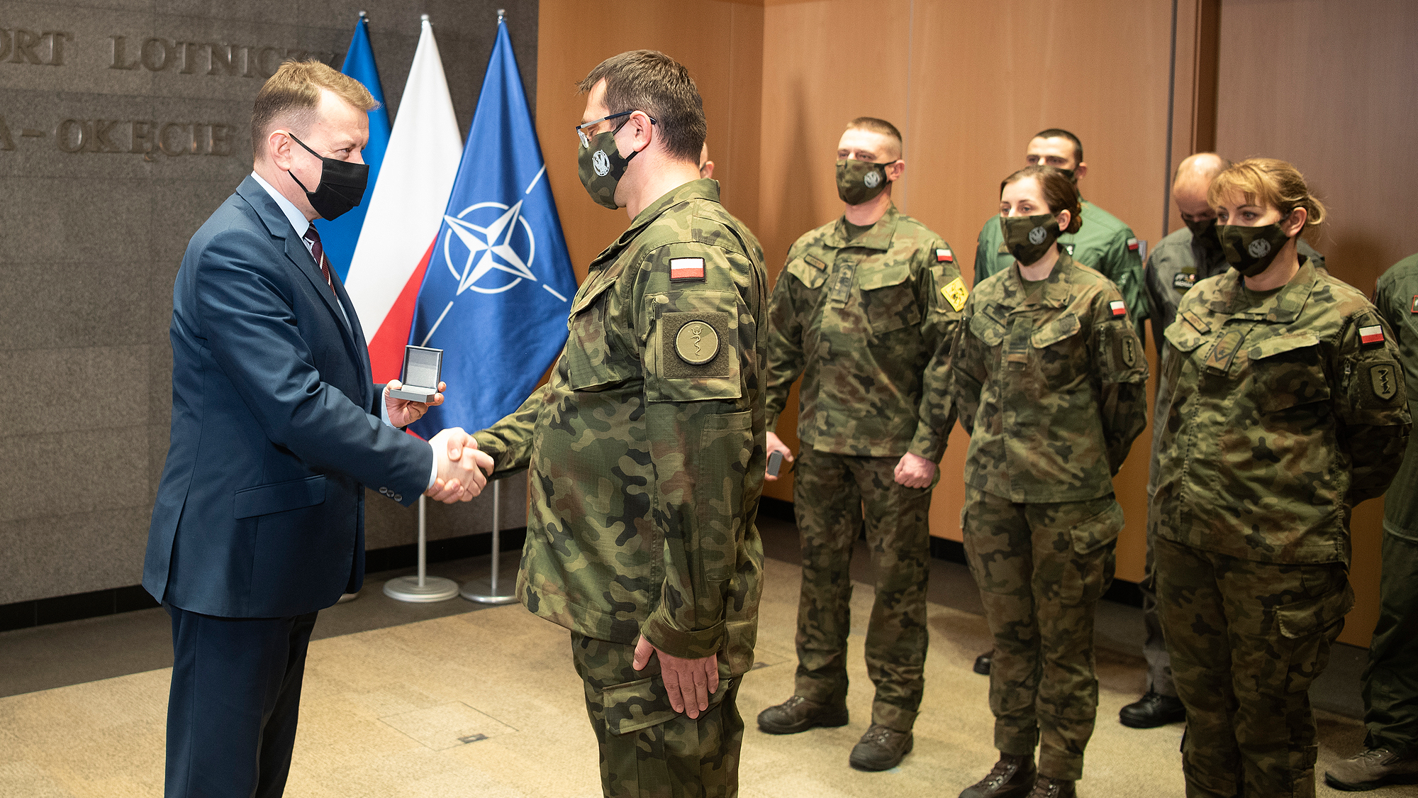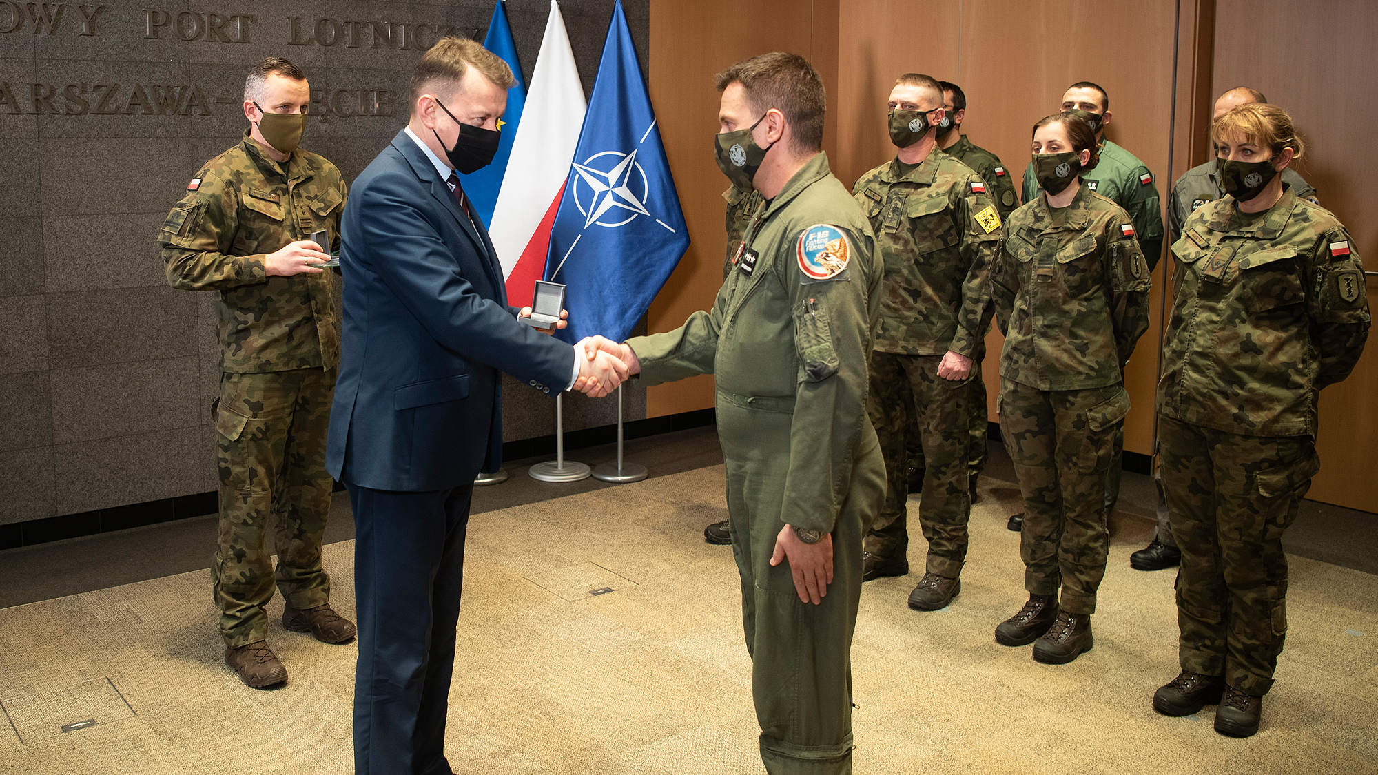 Szef MON przypomniał, że kilka tysięcy żołnierzy Wojska Polskiego codziennie pomaga chorym i wspiera służbę zdrowia w walce z pandemią COVID-19. Pomocy cywilnej służbie zdrowia udziela 16 szpitali wojskowych, 5 Wojskowych Ośrodków Medycyny Prewencyjnej oraz 14 wojskowych laboratoriów diagnostycznych. Codziennie chorymi opiekuje się około 2,5 tys. wojskowych medyków. Wojsko Polskie wspiera dziesiątki szpitali, punktów szczepień i stacji sanitarno-epidemicznych. Żołnierze pobierają wymazy, transportują leki i sprzęt medyczny, pomagają w DPS-ach. Wojska Obrony Terytorialnej prowadzą infolinię wsparcia dla seniorów i kombatantów oraz oferują pomoc w dotarciu na szczepienia. Funkcjonuje tymczasowy szpital covidowy na wojskowym Okęciu oraz modułowy przy Szaserów w Warszawie. Żołnierze Żandarmerii Wojskowej wspierają służby w weryfikacji kwarantanny. Na terenie całego kraju działa ponad 40 grup dezynfekcyjnych oraz 31 wymazowych.