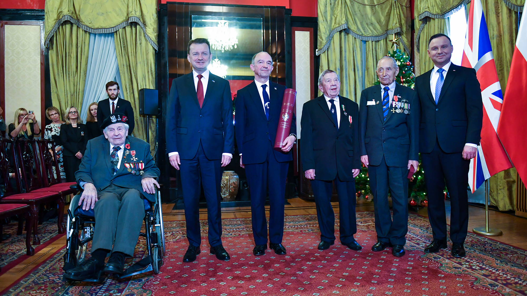 - Przed chwilą byliśmy świadkami ważnej chwili. Prezydent RP Andrzej Duda wyróżnił żołnierzy Wojska Polskiego, bohaterów którzy walczyli o wolną Polskę, walczyli na wielu frontach, walczyli podczas II wojny światowej - powiedział Mariusz Błaszczak, minister obrony narodowej podczas spotkania w Ambasadzie RP w Londynie.