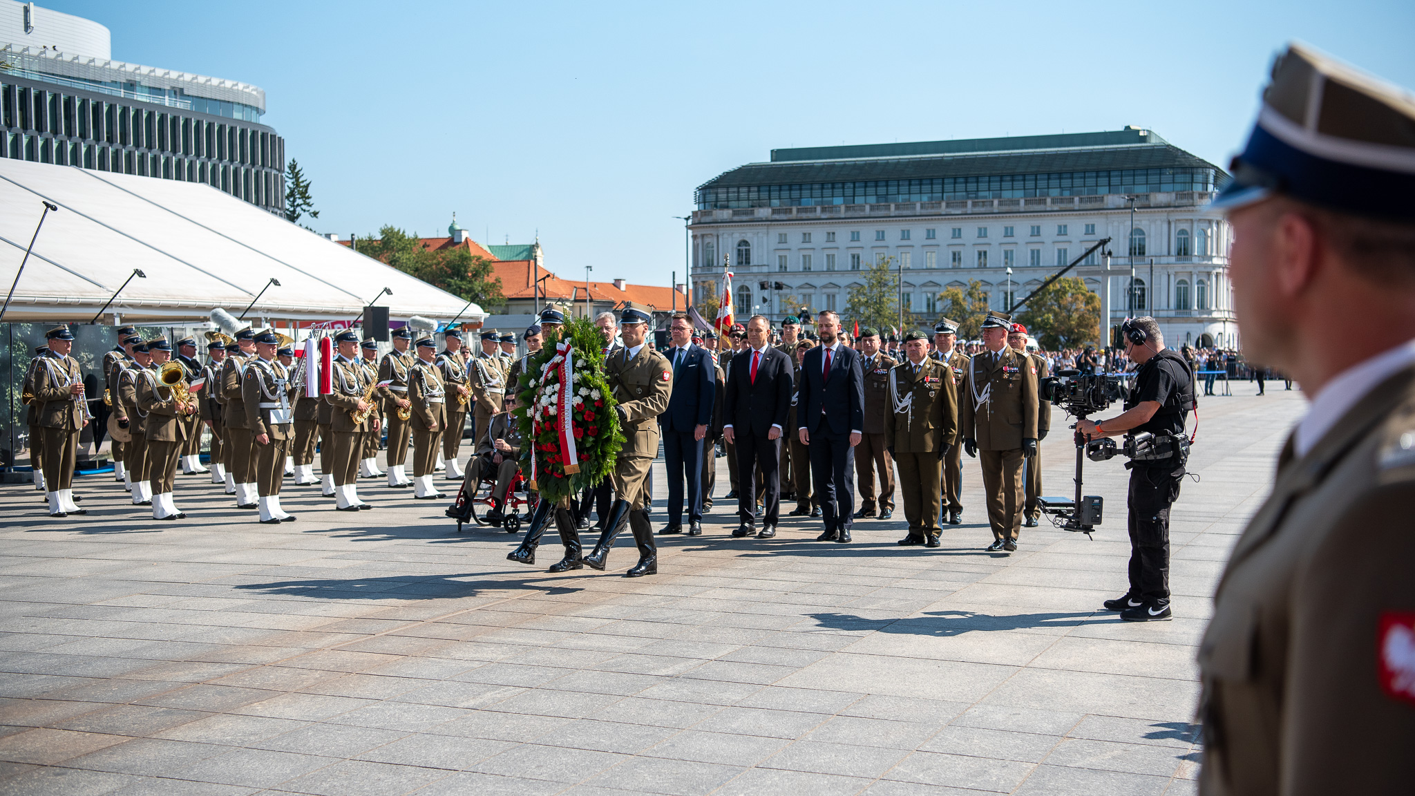 Punktualnie o godz. 10.00 na płycie Grobu Nieznanego Żołnierza prezydent Karol Nawrocki złożył wieniec od Narodu. W uroczystości udział wziął wicepremier W. Kosiniak-Kamysz, wiceminister Stanisław Wziątek oraz kadra dowódca Wojska Polskiego.