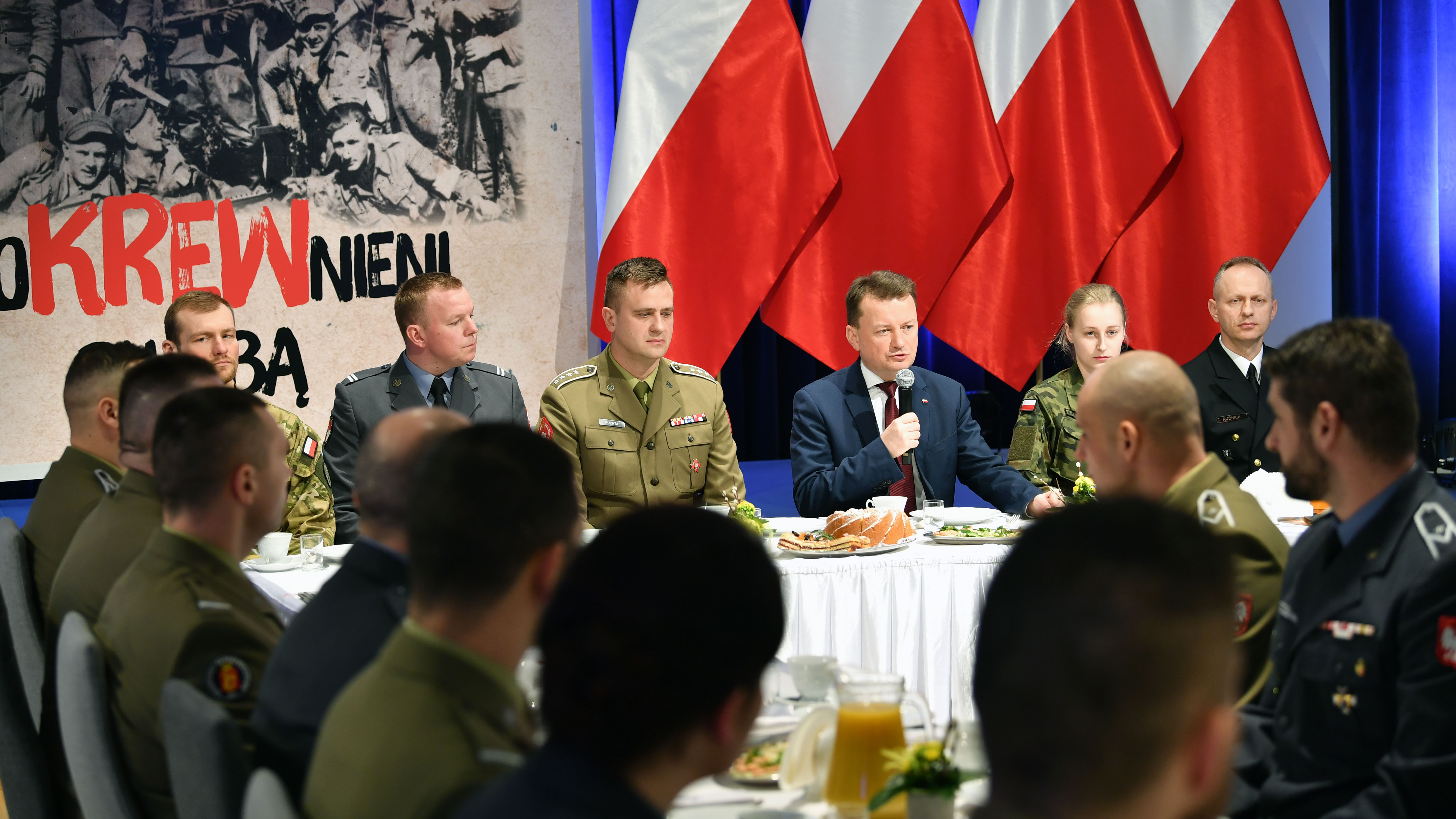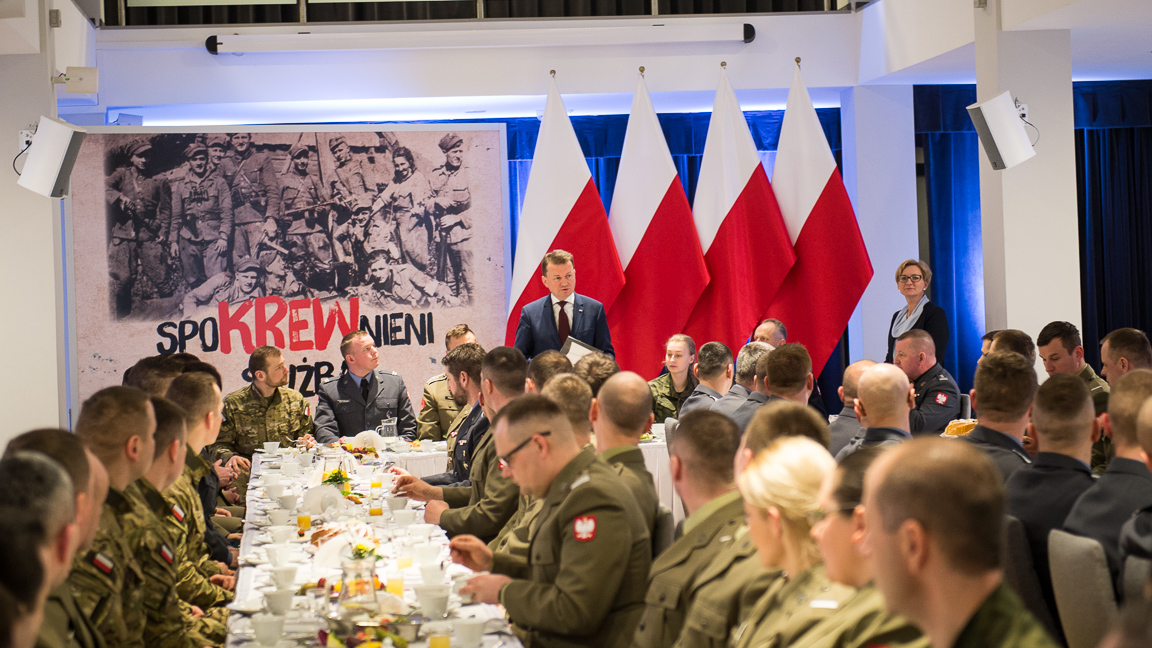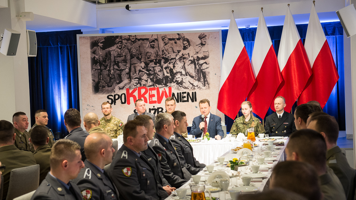 W trakcie spotkania minister podziękował żołnierzom, którzy zaangażowali się w ogólnopolską zbiórkę krwi w hołdzie Żołnierzom Wyklętym „SpoKREWnieni Służbą”. Minister przypomniał, że w 2018 roku, po raz pierwszy w akcji „SpoKREWnieni służbą” udział bierze Wojsko Polskie. Żołnierze oraz pracownicy polskiej armii przez cały marzec oddają krew.