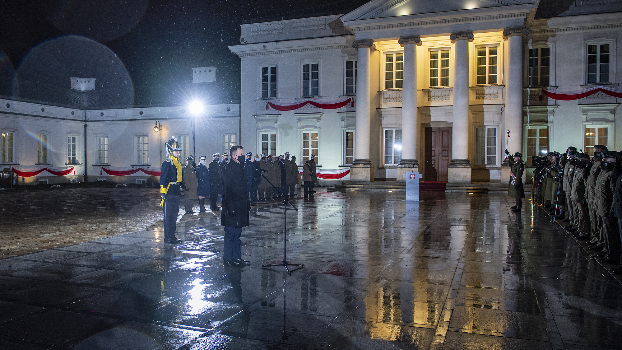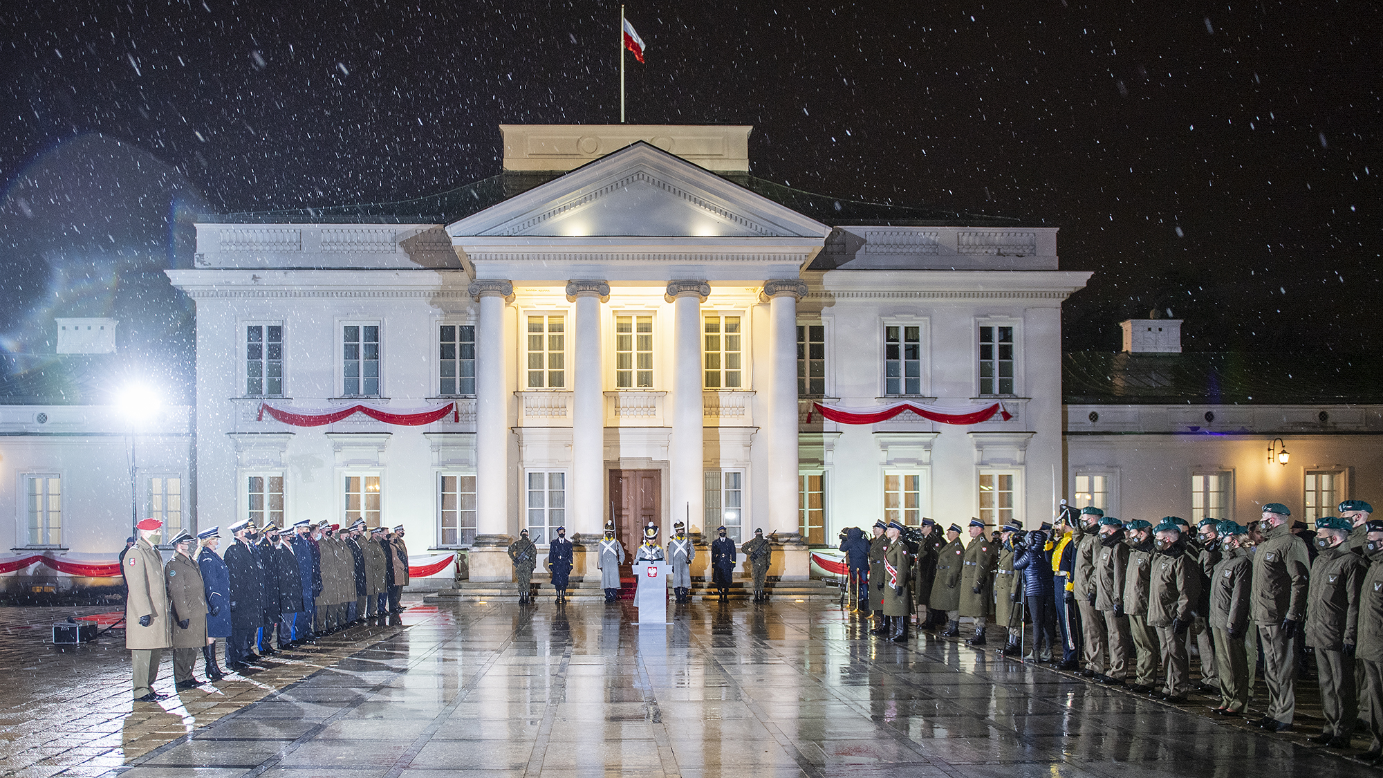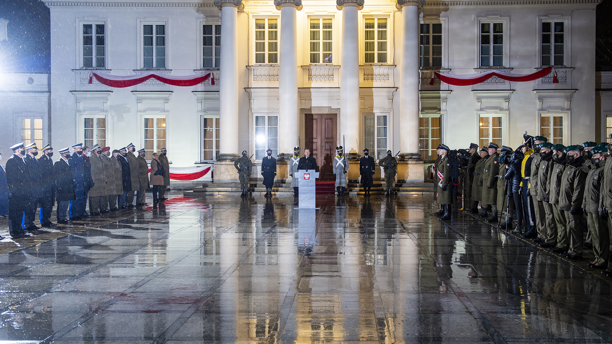 Zgodnie z tradycją, podczas apelu, podchorążowie wojskowych uczelni ubrani byli w historyczne stroje wystawili honorowe posterunki przed Belwederem.