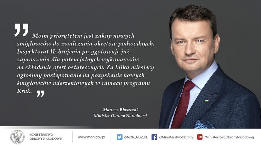 - Moim priorytetem jest zakup nowych śmigłowców do zwalczania okrętów podwodnych. Inspektorat Uzbrojenia przygotowuje już zaproszenia dla potencjalnych wykonawców na składanie ofert ostatecznych. Za kilka miesięcy ogłosimy postepowanie na pozyskanie nowych śmigłowców uderzeniowych w ramach programu Kruk. Jeszcze raz chce podkreślić, że wycofanie zaproszeń w postępowaniu na część śmigłowców dla wojsk specjalnych nie oznacza, że rezygnujemy z całego programu śmigłowcowego. Przypominam, że wojska specjalne dysponują najnowszymi śmigłowcami w Siłach Zbrojnych RP – podkreślił minister.